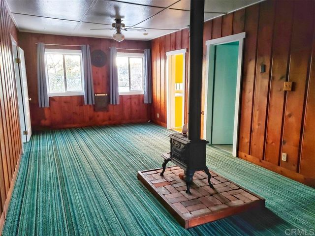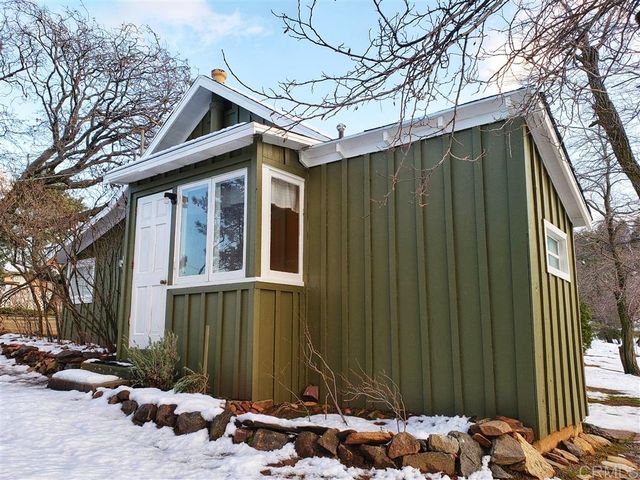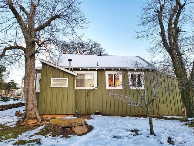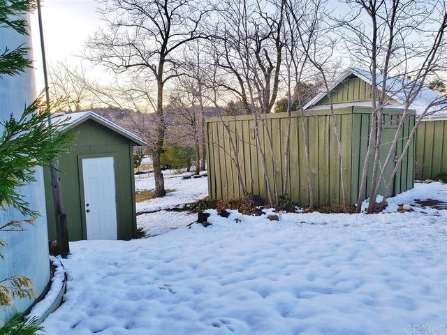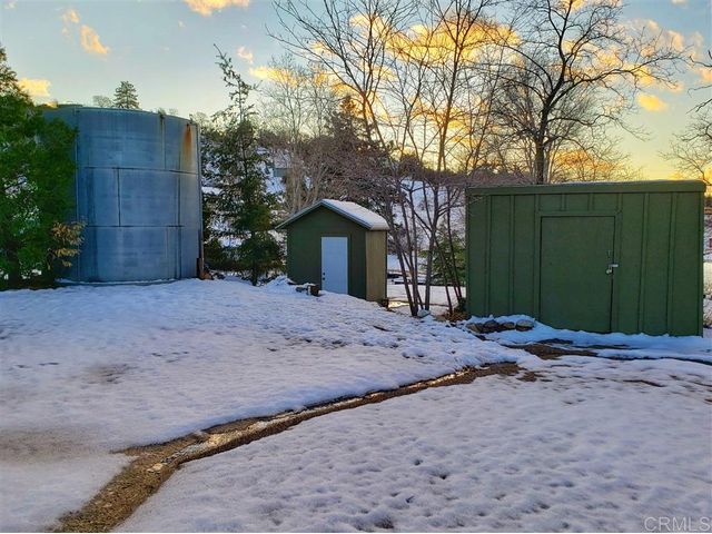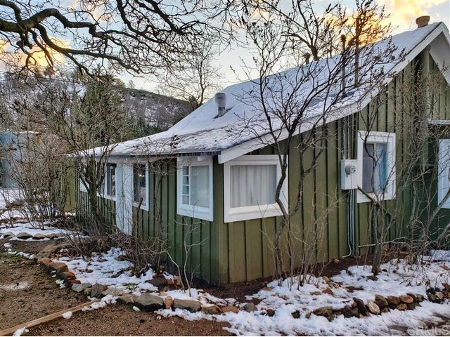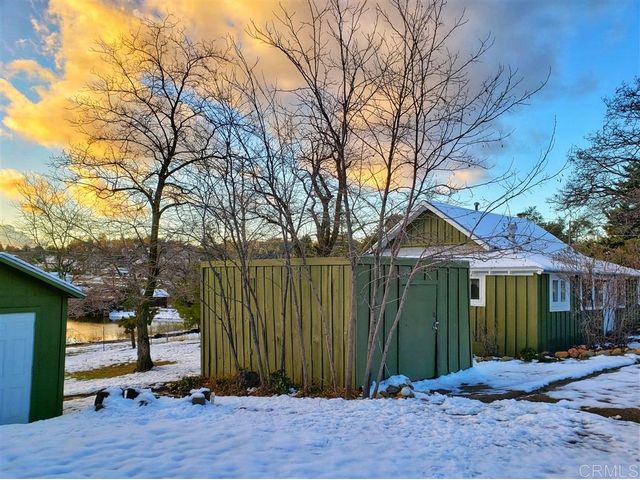 One of a kind Olde Julian cottage on 0.59 acres and gushing WATER WELL. Within Historic District, this little home is tucked out of sight, but is only a few minutes walk to Julian schools, library, post office, storefronts & eateries. 3 modestly sized bedrooms, one vintage bath, lots of storage. Laundry room attached. Outbuildings. Orchard. Pretty views of nearby pond and the happy sounds of Nickel Beer Craft Brewery across the way. Would be a charming income property/vacation rental or full time home.