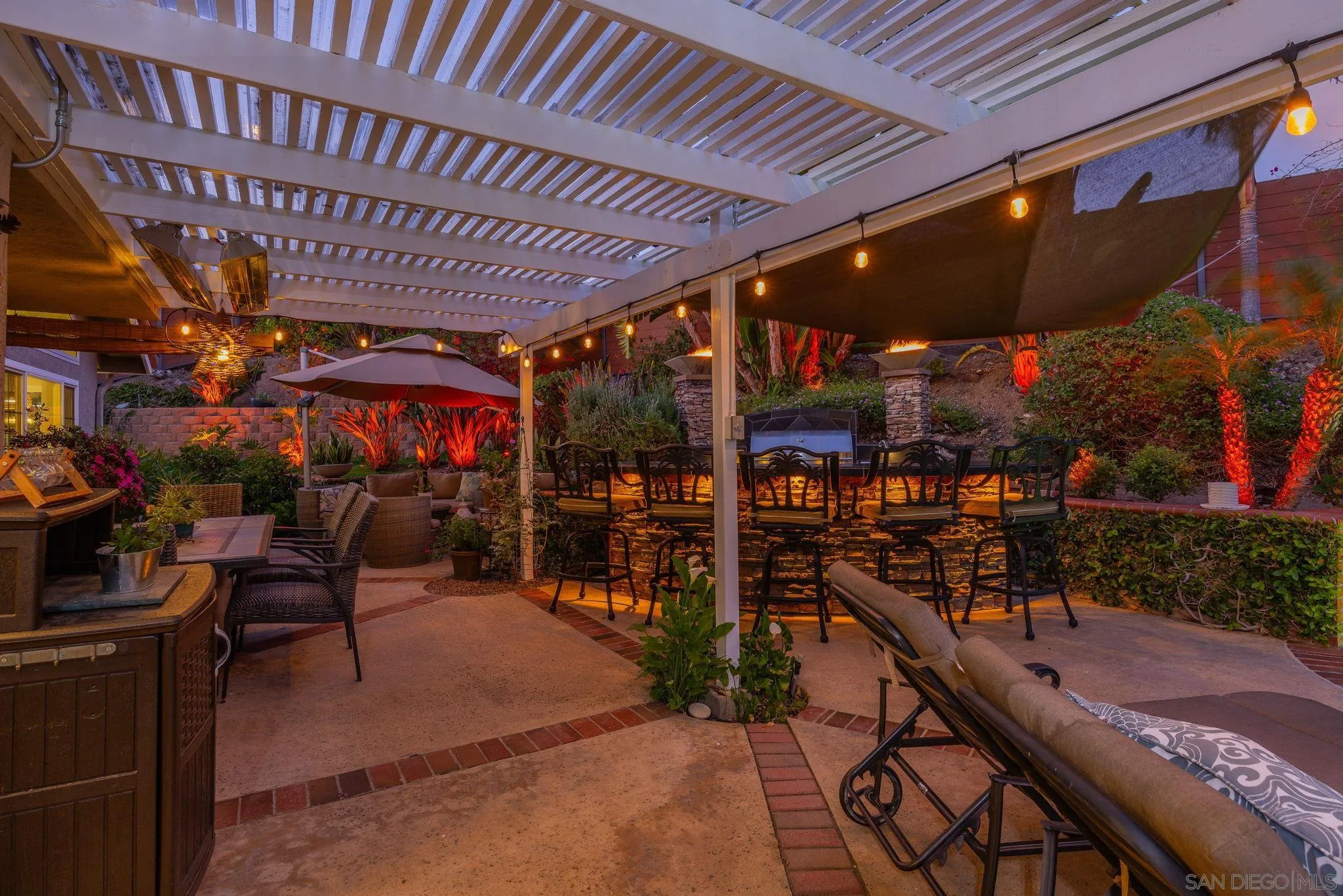 Entertainer’s Dream with Resort-Style Backyard, Ultimate PRIVACY, in Prime Location! Private oasis nestled against the serene Black Mountain Reserve. This bright, open-concept home features vaulted ceilings, 4 bedrooms, 3 full baths (1 bedroom and bath located on the 1st level), and an oversized bonus room—ideal for a home office, gym, or media space. Enjoy true indoor-outdoor living in the stunning backyard, complete with a sparkling pool, spa, waterfall, custom BBQ island with premium Delta Heat appliances, bar seating, customizable uplighting throughout, mature, tropical palm trees, bird-of-paradise, and other plants – the perfect setting for hosting or relaxing. The spacious 3-car garage offers abundant storage with built-in cabinetry, overhead racks, and a workbench. Retreat to the tranquil, island-inspired primary suite, featuring a distinctive bamboo ceiling detail, Brazilian Tigerwood flooring and a custom walk-in shower with rain shower. The updated kitchen includes new stainless steel appliances and a custom bar with a wine fridge. Located in the highly sought-after PUSD school district, minutes from Carmel Ranch Shopping Center, dining, and convenient access to I-15 and Hwy 56. No HOA or Melo Roos! Owned solar! Recent double-paned windows throughout. Dual-zone climate control.