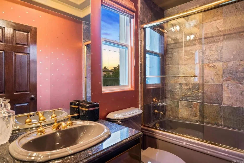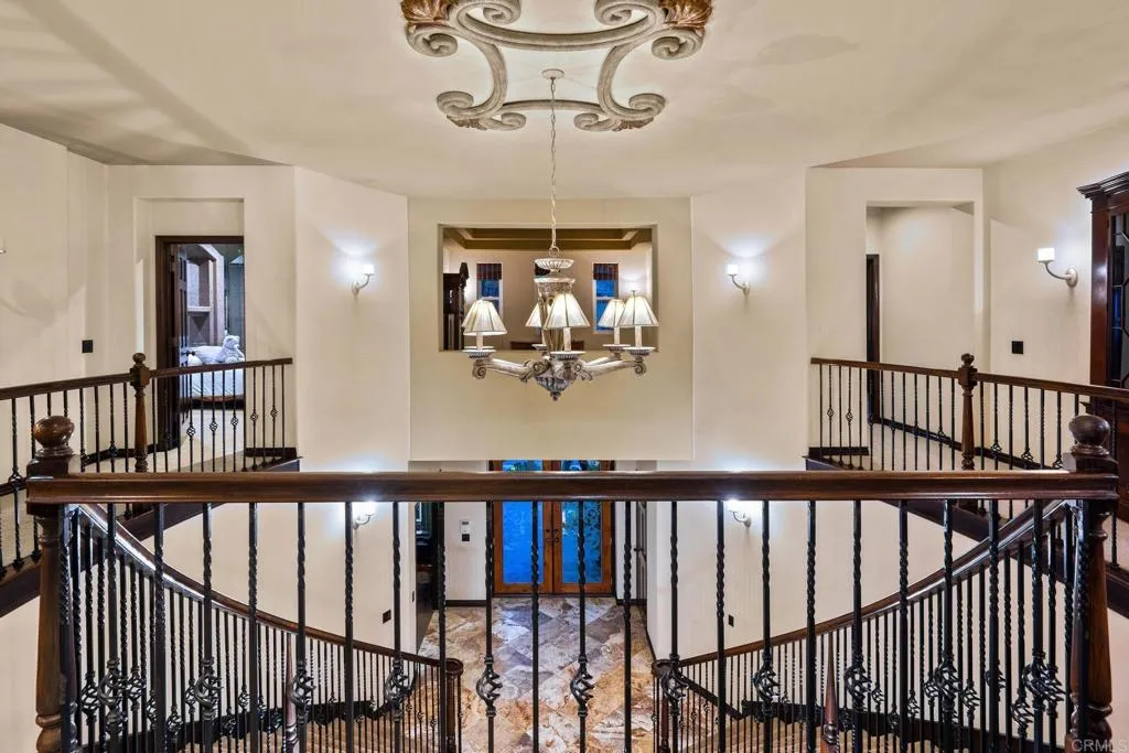 Presenting an extraordinary custom-built residence that boasts over 5,000 square feet of luxurious living space, designed to offer both comfort and sophistication. This magnificent home features a total of 5 bedrooms, each thoughtfully designed to provide a serene retreat. One of the standout features of this property is the dedicated office, which is elegantly Cherry wood-paneled and includes hidden doors that add an element of intrigue and privacy. For movie enthusiasts, the hand-carved pewter double-door movie theater is a true masterpiece, providing a cinematic experience right at home. The residence also includes an impressive 7 bathrooms, one of which is a well-appointed pool bath that adds convenience for outdoor entertaining. Step outside to discover a beautifully landscaped outdoor oasis, complete with an outdoor sauna that has its own shower, perfect for refreshing yourself after a relaxing session. The swim-up pool bar is ideal for entertaining guests, surrounded by breathtaking outdoor scenery and a pool featuring multiple cascading waterfalls that create a tranquil ambiance. As you enter the home, you are greeted by a stunning dual grand staircase that serves as a focal point of the entryway. The first floor also offers a poker room, which comes equipped with a closet and a convenient half bath, making it an excellent space for gatherings. The dining room is nothing short of dramatic, featuring eye-catching foil ceilings that enhance the overall elegance of the space. A secret hidden gem in this property is the built in lights and fog machine in the den for the