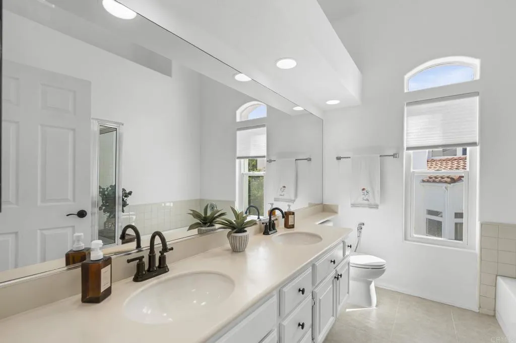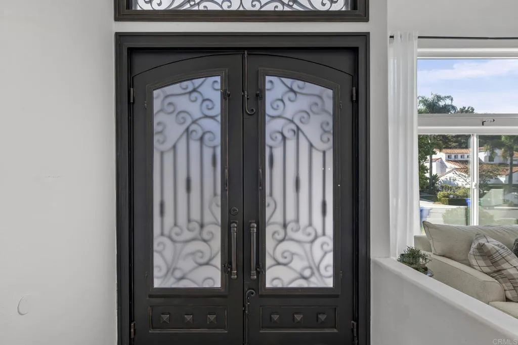 BACK ON MARKET AT NO FAULT OF SELLER OR HOME! Seller will entertain offers between $1,299,000 to $1,349,000. FULL BEDROOM AND BATHROOM DOWNSTAIRS! Located in the highly sought-after gated community of Southridge Estates of Ocean Hills in Oceanside, this 4 bedroom/3 bathroom beautifully upgraded home boasts 3,046 sqft of dynamic architecture, SOLAR (fully paid off lease), and timeless elegance. Grand entry through the striking custom iron double-door to be met with soaring vaulted ceilings, neutral tile floors, and an abundance of natural light pouring through the oversized dual pane windows. The first level offers a thoughtfully designed floor plan featuring a formal living room with gas fireplace, an elegant dining space with modern lighting, and a bright, open kitchen complete with stainless steel appliances, an expansive island for culinary prep, and a charming breakfast nook with bay windows. The family room features fully retractable doors that open wide to a private backyard retreat, perfect for indoor-outdoor entertaining. The downstairs bedroom and full bath provide flexibility for guests, extended family, or home office use. Upstairs, the primary suite is a peaceful sanctuary with picturesque mountain views, a generous walk-in closet with custom built-ins, dedicated vanity space, and a spa-inspired bathroom with a deep soaking tub. Bonus loft area upstairs with walk-in closet offer endless opportunities for upstairs living space & storage! Enjoy a lush backyard with blooming roses, vinyl fencing & wrought iron fencing, and no neighbors directly behind, offering bot