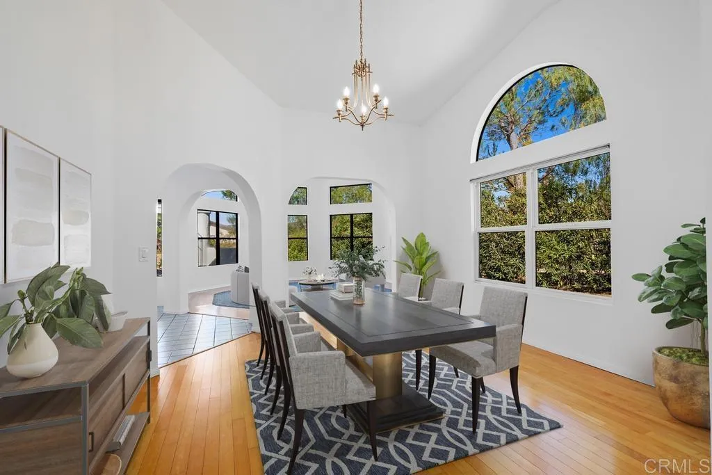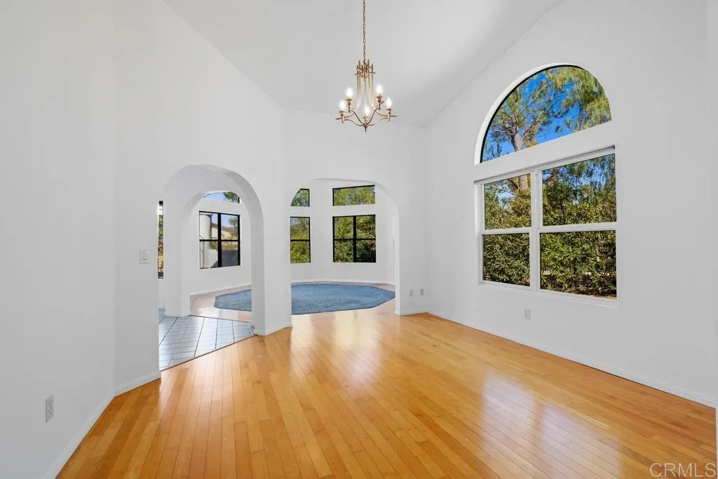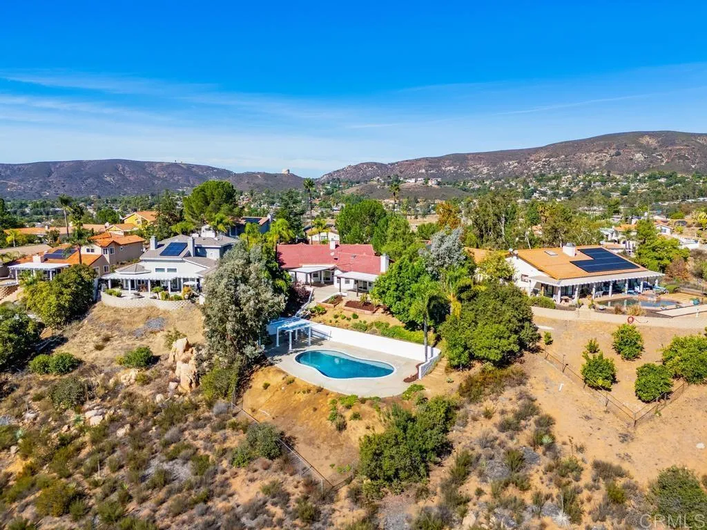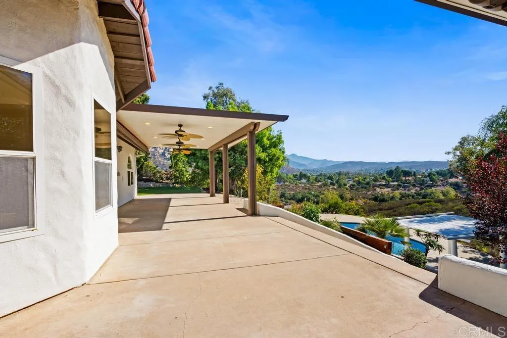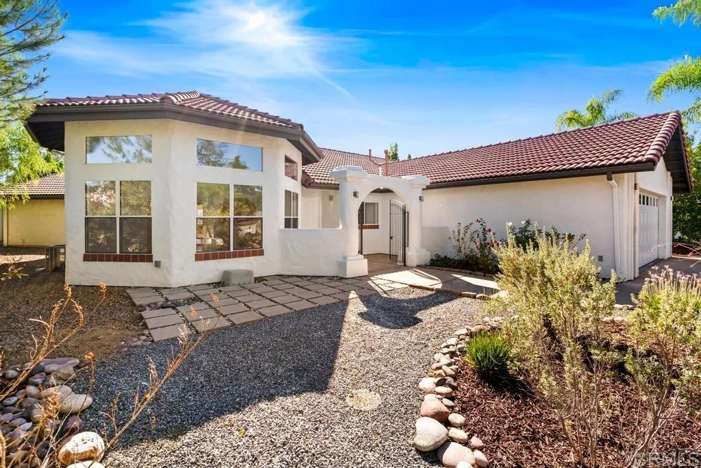 Welcome to this 4-bedroom, 2.5-bathroom, single-level home with a clean contemporary design and offering over 3,000 sq. ft. of living space, located in the in the heart of San Diego County, in the highly desired Ramona neighborhood of the San Diego Country Estates. The kitchen features quartz countertops, stainless steel appliances, a spring water filtration system, as well as plenty of storage and workspace. The primary suite includes a fireplace, large walk-in closet, jacuzzi soaking tub, and separate shower. A split bedroom floor plan provides privacy, with three additional bedroomsall on the opposite wing of the primary suite. Formal areas of the home include a unique octagonal living space with large windows that fill the home with natural light and a large formal dining room. The family room features vaulted ceilings and a fireplace, creating a comfortable and open atmosphere. Step outside to your fully fenced private backyard retreat, complete with a sparkling pool, covered patio, and shaded seating area. The backyard also includes a collection of fruit trees, featuring peach, pear, pomegranate, orange and apricot. Enjoy panoramic views of Eagle Peak, the Laguna Mountains, and Cuyamaca Mountains, often snow-capped in winter. The property backs to open space, offering privacy in a stunning natural setting. Additional features include a spacious indoor laundry room with deep sink, folding station, and ample storage in the 2-car garage. If youre searching for a single-story home for sale in Ramona, CA with mountain views, contemporary design, and a pool, this home offer