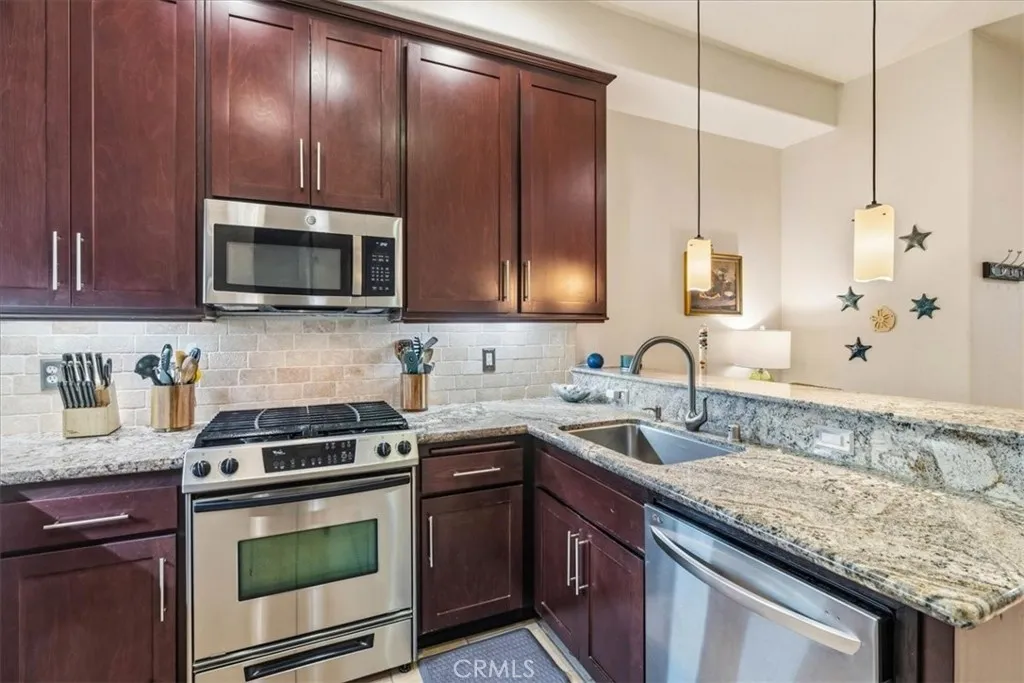 Step into refined coastal living at this elegant townhouse in the beautiful Trilogy at Monarch Dunes community. Beyond a gated courtyard is a 1,639 square foot home with 3 bedrooms, 2 full bathrooms, and a downstairs powder room. The open-concept main level connects the kitchen, dining room, and living room areas beneath recessed lighting anchored by a stone-surround fireplace adding warmth and character. A view of the tranquil monarch butterfly habitat is seen from the living room window. The kitchen features granite countertops with a stylish backsplash, a breakfast bar accented by pendant lighting, a gas stove, stainless steel appliances, and generous storage with shaker cabinets and a walk-in pantry. A dedicated laundry room with ample cabinetry leads to a two-car garage with built-in storage. Upstairs, the spacious primary suite includes a walk-in closet and opens through a glass sliding door to a private balcony. The ensuite bath offers dual sinks and a walk-in shower. Two additional bedrooms and a full bath provide space for family, guests, or a home office. The living space is enhanced by a skylight and abundant windows to provide plenty of natural light. Within Trilogy, residents enjoy a wealth of resort-style amenities including an 18-hole golf course, 12-hole challenge course, Adelinas Bistro, The Butterfly Grill, Sandalwood spa, a heated lap pool, art studio, and courts for tennis, pickleball, and bocce ball along with many other amenities for an exceptional blend of leisure and luxury living.