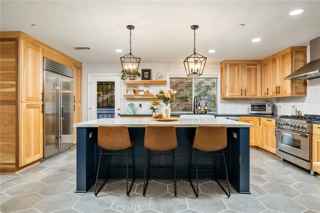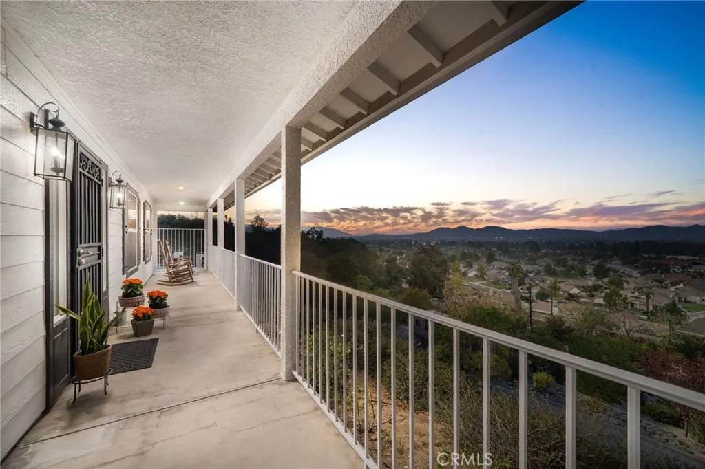 Experience luxury, space, and breathtaking views in this custom-built 4-bedroom, 2.5-bath Cape Cod-style home with 2,572 sq. ft. of living space plus a 520 sq. ft. finished attic, nestled in the prestigious Poppy Hill community of Riverside. Built on an engineered hillside foundation, this home showcases spectacular sunsets, sparkling city lights, and snow-capped mountain views from nearly every room and the wraparound porch. Recently painted inside and out and featuring new flooring throughout, this home has been beautifully refreshed while maintaining its custom charm. The spacious family room features a wood-burning stove, perfect for cozy evenings, and the large dining area opens seamlessly to the gourmet-style kitchen. Designed for entertaining and culinary creativity, the kitchen includes: high-end stainless steel appliances, a Sub-Zero refrigerator, drawer microwave, wine refrigerator, and custom cabinetry. The farmhouse sink, modern tile flooring, and kitchen island with breakfast bar make this space both functional and stunning. The primary suite is a true retreat, offering a private balcony to enjoy sweeping valley views, a walk-in closet with custom-made shelves, and a spa-inspired bathroom with dual sinks, a deep soaking tub, and a separate shower. Upstairs, the 520-square-foot finished attic adds incredible versatility, featuring built-in cabinets, a desk, and shelving. This space can easily transform into a home theater, office, gym, or second family rooma rare and valuable bonus for modern living. The oversized three-car garage (36x26) is a dream for hobbyist