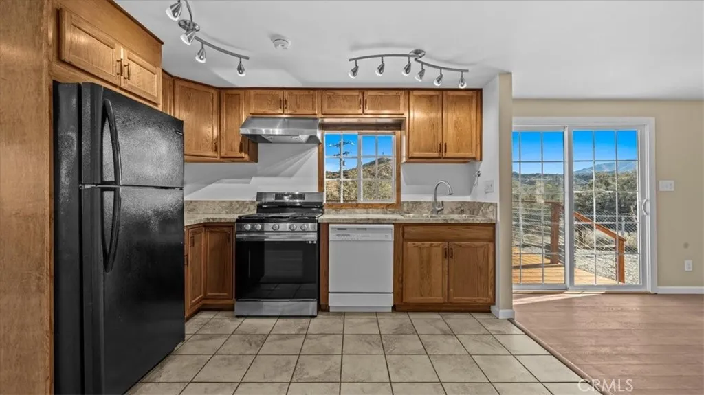 Escape to peaceful country living in this beautifully updated 2 bedroom, 2 bath manufactured home situated on 5 acres of land. Surrounded by wide open views and a quiet rural backdrop, this property offers the perfect mix of privacy and comfort. Inside, youll find an inviting open floor plan with laminate flooring, recessed lighting, and ceiling fans throughout. The spacious living room features a cozy wood-burning stove with a stacked stone accent wall, creating a warm and welcoming feel. The kitchen features track lighting, and ample counter space, open to a dining area with sliding doors that lead out to a large wood deck, a great spot to enjoy the peaceful surroundings. Both bedrooms are bright and comfortable, and the bathrooms feature tile finishes and updated fixtures. With 5 acres of land, theres plenty of room for your animals, RVs, or outdoor projects. This home also comes with 4 water shares. This home offers a relaxing lifestyle with room to grow and enjoy the natural beauty around you.