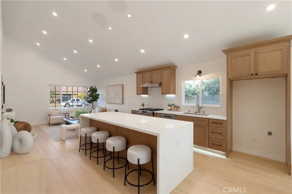 Welcome to this stunning, fully remodeled single-story home in the heart of Cerritos! This beautifully reimagined 3-bedroom, 2-bathroom residence offers 1,283 square feet of stylish living space on a 5,203 square foot lot, perfectly balancing modern design and everyday comfort. Step inside to a bright, open floor plan with soaring high ceilings that create an airy and spacious atmosphere throughout. The living area flows seamlessly into the brand-new kitchen, featuring quartz countertops, custom cabinetry, and stainless steel appliances perfect for both everyday living and entertaining. Both bathrooms have been completely remodeled with designer finishes, offering a clean, contemporary look. Additional upgrades include new flooring, recessed lighting, new dual-pane windows, a new roof, new HVAC system, and fresh interior and exterior paint, providing a truly move-in-ready experience. Nestled in a prime Cerritos location within the award-winning ABC Unified School District, this home is zoned for Cerritos High School (10/10) and Carmenita Junior High. Conveniently located near top-rated schools, shopping centers, dining, and major freeways, this home combines luxury, location, and lifestyle.