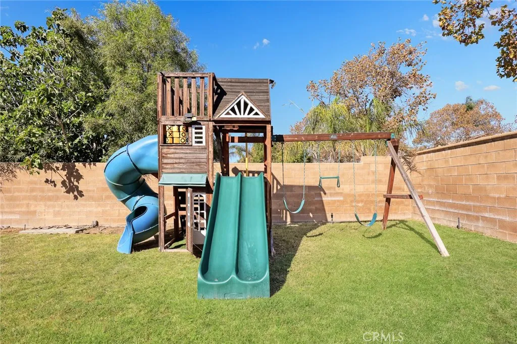 Highly desirable home located on a huge lot in the prime neighborhood of Eastvale. This two-story residence features a total of 5 bedrooms and 3 bathrooms, offering a perfect blend of modern comfort and charm. The upgraded kitchen features a central island, and high-end finishes. The great room creating a warm and inviting atmosphere. The luxurious master suite includes a spacious walk-in closet, additional storage, and an upgraded en-suite bathroom. There is one bedroom and one full bathroom downstairs. There are three additional bedrooms upstairs besides master suite. The backyard is an entertainer's dream, featuring kid playgroud and ample space for outdoor relaxation. Located in the prestigious Eastvale community, this home is located close to award-winning private high school, 5 minutes to freeways, shops, super markets, dining, and entertainment, walking distance to Providence Ranch Park Recreation Center. Don't miss this incredible opportunity.
