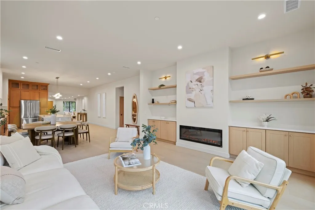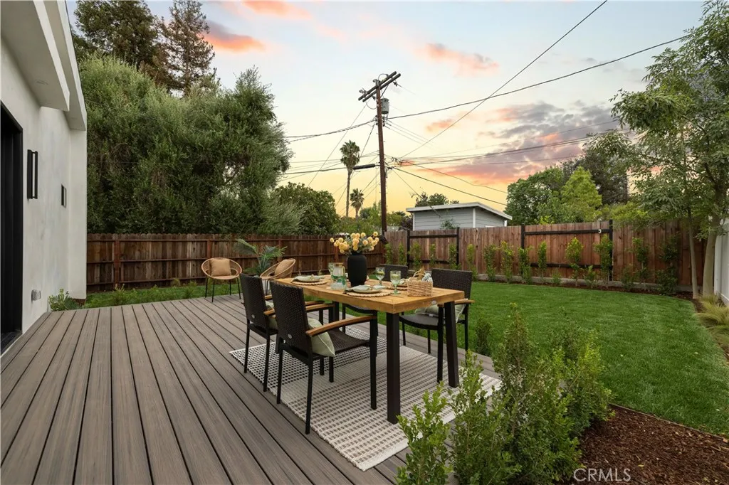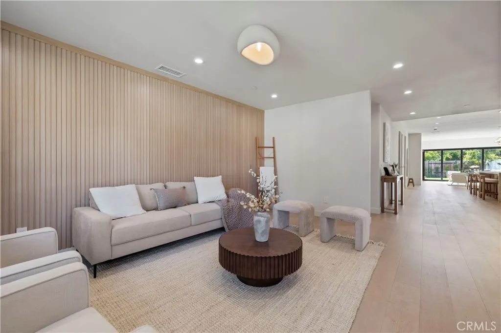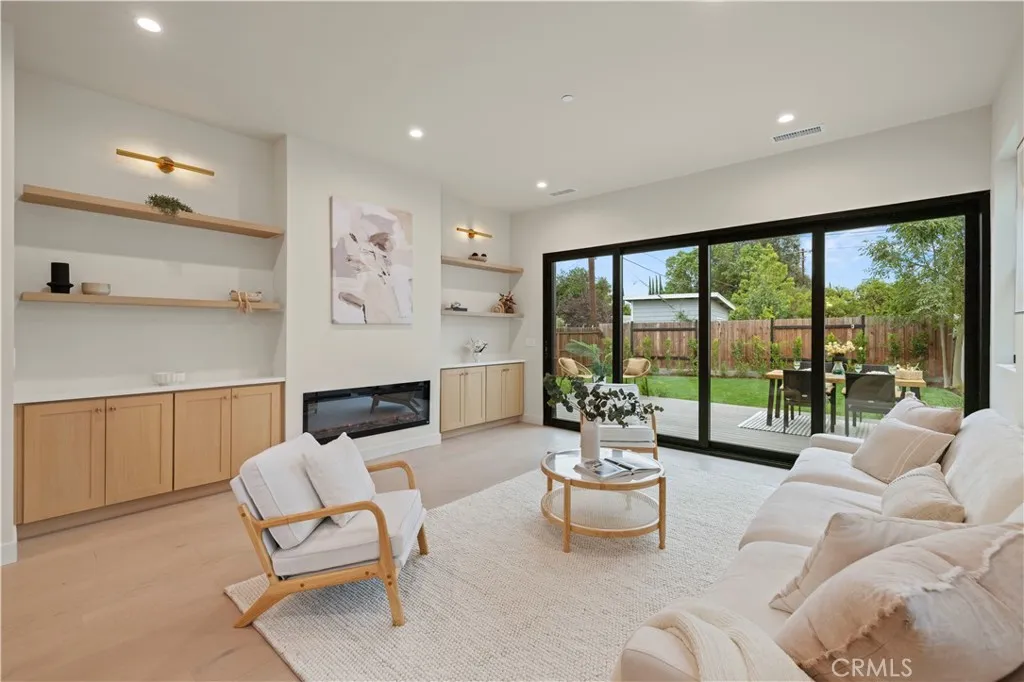 Welcome to this stunning custom-built home in Encino, perfectly situated on a generous lot! This organic modern 4-bedroom, 3.5-bath residence offers nearly 2,500 sq ft of beautifully designed living space with an open-concept indoor/outdoor layoutperfect for entertaining. From the moment you arrive, the wide frontage impresses with its expansive driveway and striking front entrance. Step inside and youll be greeted by a bright, airy floor plan that immediately sets the tone for sophisticated living. The formal living room at the front of the home is ideal for elegant gatherings, while the expansive great room offers the ultimate space for hosting luxurious indoor/outdoor events. The kitchen is a true showpiece, featuring floor-to-ceiling wood cabinetry, exquisite Taj Mahal quartzite countertops, and a full walk-in pantry. Adjacent to the kitchen, the sun-drenched dining area seamlessly connects to an oversized family room, where built-ins, custom shelving, and a cozy fireplace create the perfect evening retreat. Panoramic sliding doors open to a spacious deck and large backyard, creating effortless flow and extending your living space outdoors. The extra-large primary suite is a private sanctuary, complete with a walk-in closet and a luxurious spa-style bathroom featuring a double vanity and oversized shower. A secondary suite includes its own private bathroom, while two additional spacious bedrooms share a beautifully appointed bathroom at the front of the home. A separate laundry room and stylish powder room round out the interior amenities, offering total convenience and