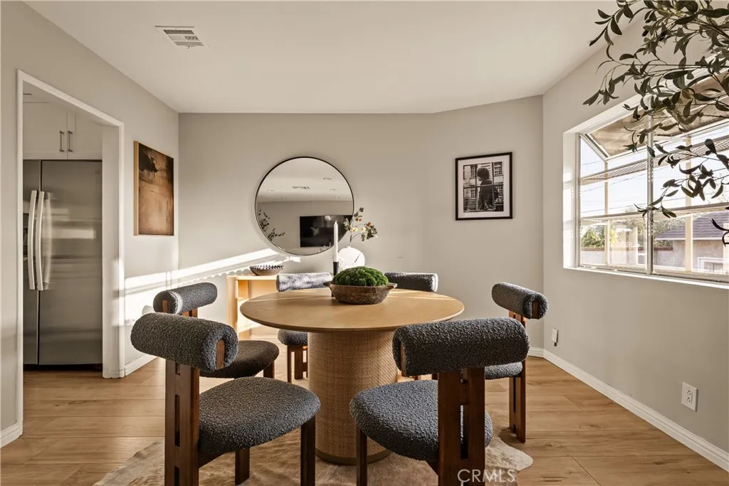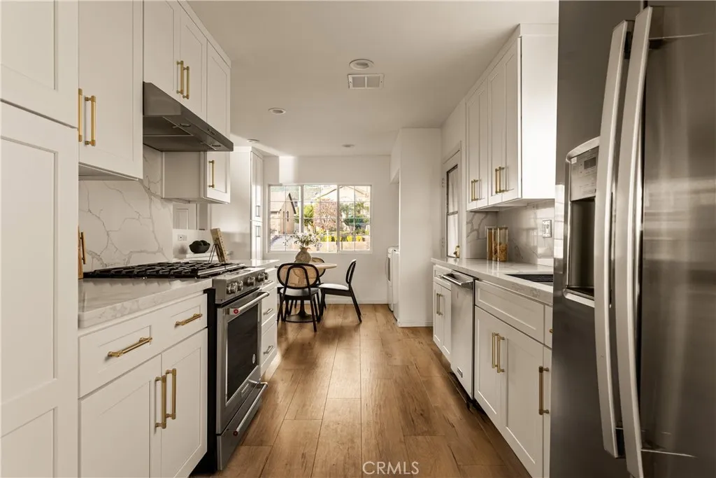 Nestled on a peaceful, tree-lined street in the coveted Burbank foothills, this timeless Ben Mar residence blends classic California charm with thoughtful modern updates. Lovingly maintained and upgraded over five decades, this four-bedroom, two-bath home radiates warmth and comfort from the moment you arrive. Inside, natural light pours across wide-plank wood floors, guiding you through the connected living and dining roomeach designed for effortless flow and everyday gathering. A stately fireplace anchors the living space, complemented by curated modern finishes and serene mountain views through expansive windows. The reimagined kitchen is a showpiece of functionality and design, featuring shaker cabinetry, quartz counters, brass hardware, and stainless steel appliances. A cozy breakfast nook captures morning sunlight and frames picturesque foothill views. Upstairs, the primary suite feels like a private retreat beneath soaring wood-beam ceilings. Unique stained-glass windows add character, while the updated ensuite bath dazzles with marble-style tile, a walk-in rain shower, and elegant brass accents. Step out to your private balcony and enjoy sweeping sunset views over the valley. The backyard is perfect for entertaining, complete with a spacious covered patio, built-in BBQ kitchen, and lush surroundings ideal for alfresco dining. Recent upgrades include a new roof, copper plumbing, vinyl and aluminum windows, and central air and heat for year-round comfort. Located moments from hiking trails, top-rated schools, and the heart of Burbanks dining and entertainment scene, 1