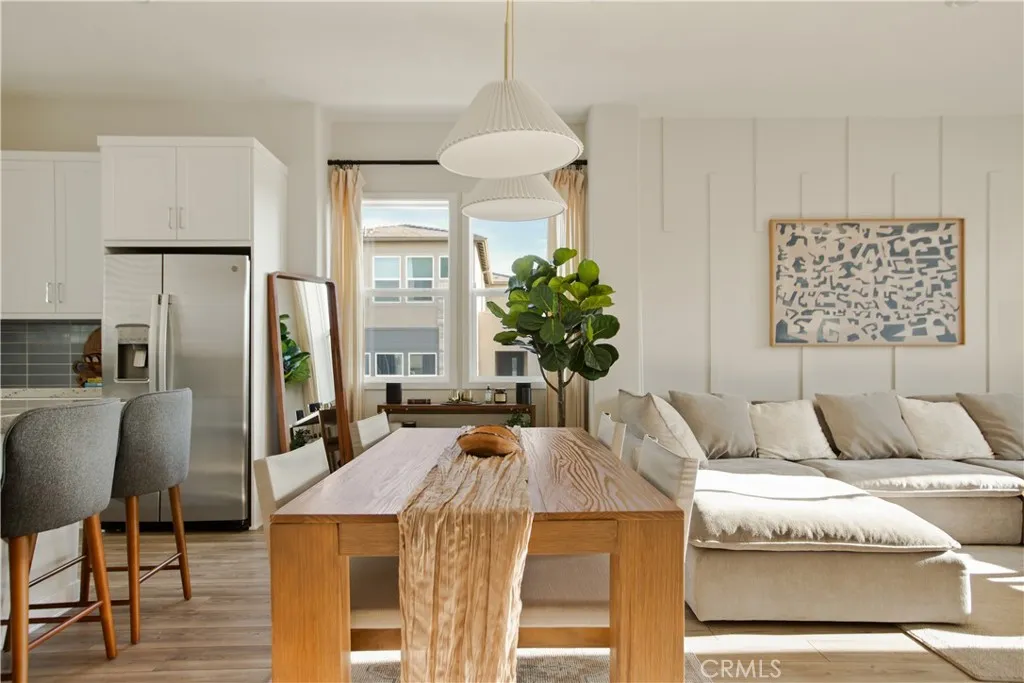 Former Model Home with PAID OFF SOLAR, showcasing thousands of dollars in designer-selected upgrades throughout. Perfectly positioned in one of Solis Park's most desirable locations with no front neighbors and unobstructed park and sunset views, this residence offers elevated living in every detail. The interior features custom designer flooring, upgraded cabinetry, premium lighting, sleek window treatments, and a gourmet chef's kitchen with high-end stainless steel appliances and an oversized island ideal for entertaining. The open-concept living space flows seamlessly for everyday comfort and hosting. Upstairs, the primary suite captures peaceful park views and evening light, complete with a spacious walk-in closet and a beautifully upgraded en-suite bathroom with dual vanities and an oversized glass shower. Additional highlights include upstairs laundry, smart home features, and an attached 2-car garage. Residents enjoy access to the brand-new Great Park amenities-resort-style pools, clubhouses, playgrounds, sports courts, and miles of walking and biking trails within the award-winning Irvine Unified School District. Portola High school is walking distance and close by elementary schools. A rare opportunity to own a former model home with PAID OFF solar and extensive upgrades