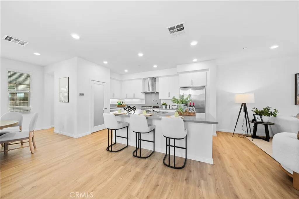 CORNER LOT, FIRST FLOOR SUITE, WALKING TO PARK AND SCHOOL! COVERED DECK & FRONT YARD!! This Stunning three-story townhome located in the vibrant Great Park community of Irvine. With 2,075 square feet of thoughtfully designed space, offers three bedrooms and three and a half bathrooms, The first-floor suite provides flexibility for guests, a home office, or multi-generational living, while direct garage access adds convenience. Upstairs, the open-concept main level is bathed in natural light, seamlessly connecting the living, dining, and kitchen areas. The gourmet kitchen features Special Island, quartz countertops, stainless steel appliances, a walk-in pantry. On the top floor, the primary suite is a true retreat, offering a walk-in closet, a luxurious ensuite bath, and expansive views of the Great Park hot air balloon. A secondary bedroom with its own private bath ensures comfort for all. Enjoy outdoor living with a covered deck and a charming front yard. Residents have access to resort-style pools, scenic trails, sport courts and clubhouse. Located in the top-rated Irvine Unified School District, this home is minutes from parks, shopping, and major freeways.
