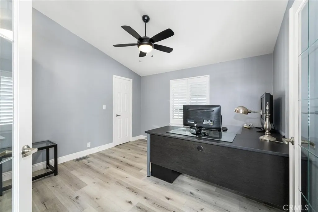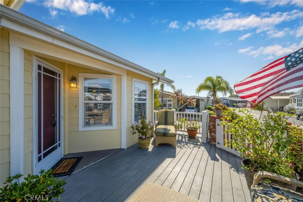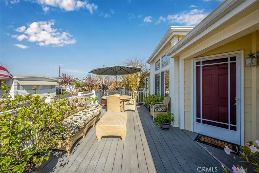 Sitting pretty in highly desirable Rancho del Rey Mobile Estates! A 55+/18 age gated community nestled in the area of Huntington Harbour. Convenient to shopping, sandy beaches, freeways, restaurants, wetland hiking trails, Iconic Huntington Beach Pier and Surf City Main Street attractions and much more. This 2006 Silvercrest Advantage model checks all the boxes. Situated in an upscale area in a prime corner lot, interior location that offers nearby guest parking. Interior features include a bright and open floorplan, high ceilings boasting numerous skylights, recessed lighting with a Tray ceiling in the living room, laminate flooring throughout, formal dining area, plantation shutters, raised panel interior doors and ceiling fans. The spacious kitchen features an Island with Quartz countertop and lots of underneath storage that offers convenient pullout drawers. Other kitchen amenities include stainless appliances, a separate space for a breakfast table and chairs, high ceilings and an abundance of cabinets and a pantry with pullout drawers. Adjacent to the kitchen there is a very spacious laundry room that provides a sink basin, lots overhead storage cabinets and more pantry space. The very spacious master bedroom offers a giant walk-in closet, tasteful laminate flooring, plantation shutters and ceiling fan. The Master bath features dual sinks, jetted soaking tub and a separate walk-in shower that offers built-in seating and safety grab bar. Exterior features include hard to find private patio deck, storage shed, and oversized corner lot with stylish landscaping that provi