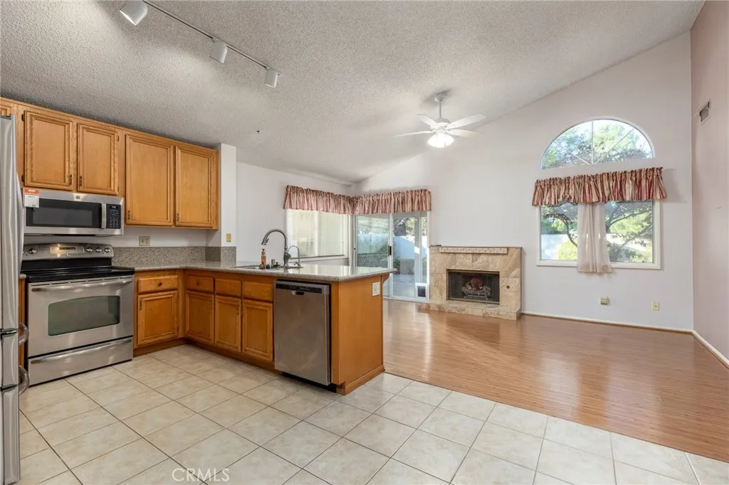 Welcome to 5609 Riviera Avenue, a single-story residence nestled in the desirable 55+ Sun Lakes Country Club community. This inviting 3 bedroom, 2 bath home offers approximately 1,505 square feet of comfortable living space on a beautifully landscaped lot that requires little maintenance. Step inside to find a bright, open layout featuring high ceilings and some tasteful upgrades. The spacious living and dining room area flow seamlessly into the kitchen complete with granite counter tops and stainless steel appliances. The primary suite provides a peaceful retreat with a private bath that includes a custom walk-in shower with mobility-accessible amenities, walk-in closet, contemporary vanity with double sinks, and a sliding door that leads directly to the patio area. The guest bathroom also features a newer vanity/sink and custom walk-in shower. The beauty of this wonderful home is that it features 2 guest bedrooms, a rare find in this active adult community. The attractive custom cabinet and drawers in the hallway are sure to make organizing personal items a breeze. Step outside to a private backyard designed for low maintenance, complete with twin covered patios, mature landscaping , and lovely mountain views - perfect for enjoying quite mornings or evening gatherings. The attached 2 car garage adds convenience with storage cabinets and an attic door with ladder for more storage room. This lovely home that sits on a nearly 7,000.00 square foot lot in a quiet, tree-lined neighborhood and provides comfort, low-maintenance living and resort-style amenities. What a wonderful