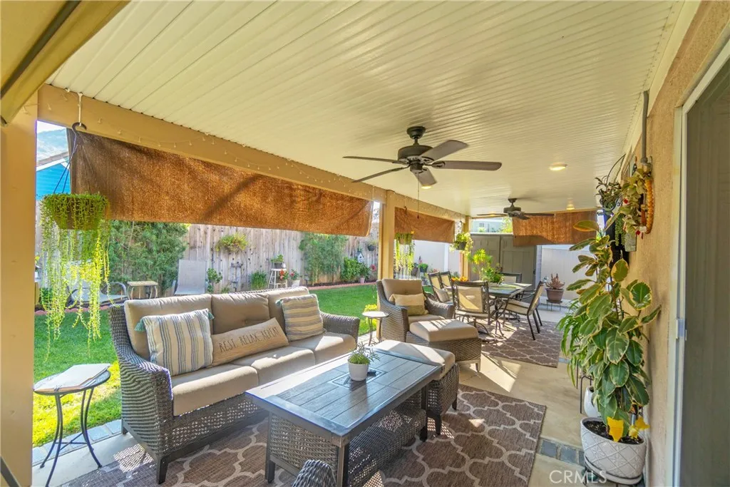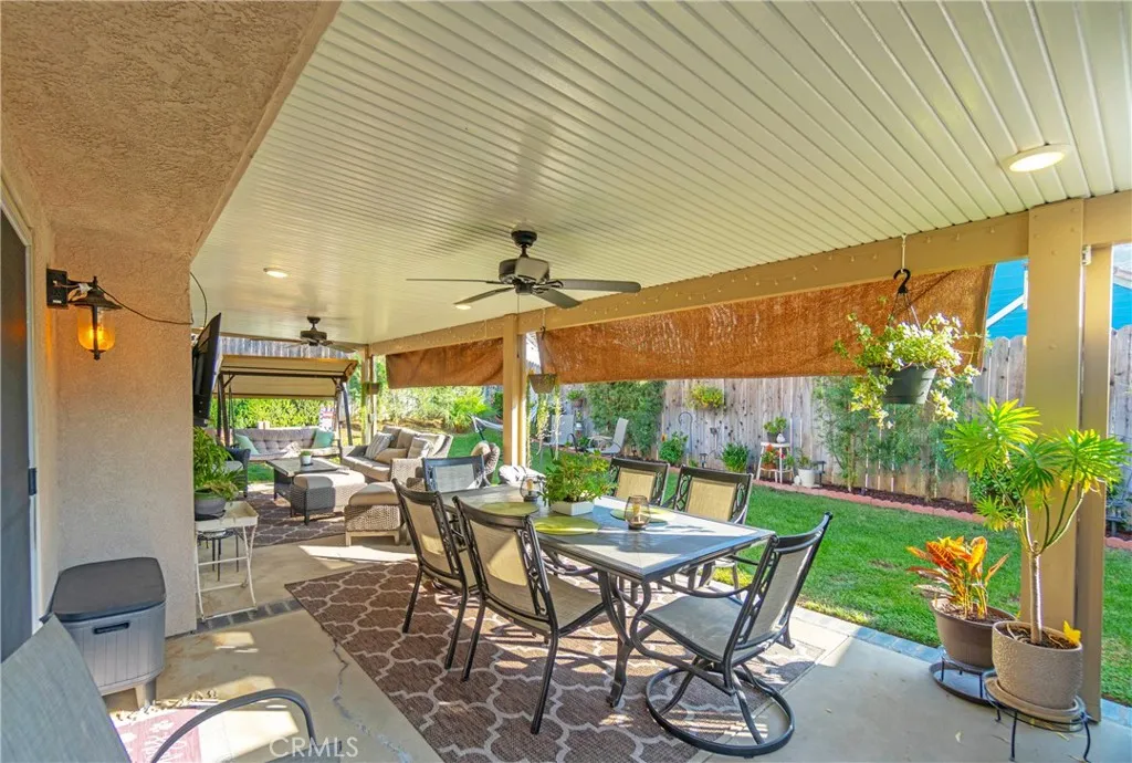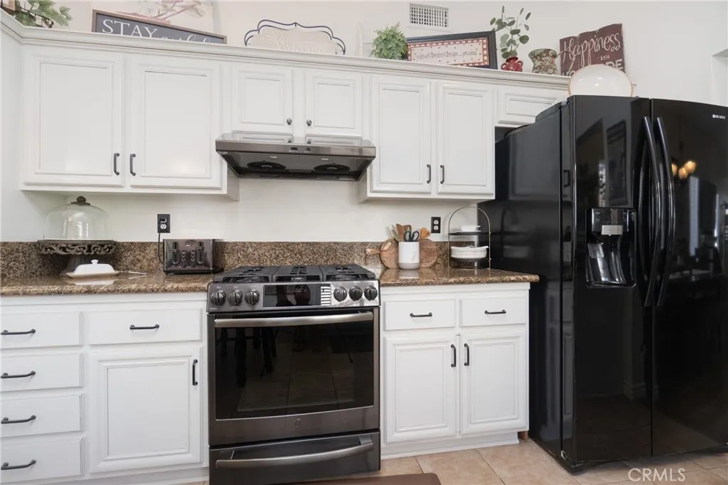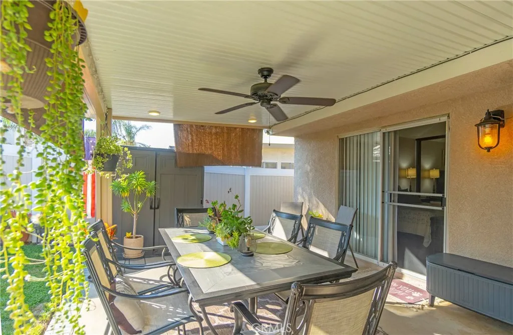 SPECTACULAR SINGLE STORY HOME ON PRIME LOT IN SOUTHRIDGE VILLAGE! Completely remodeled with exquisite features and contemporary neutral dcor that will compliment your furnishings! Feel refreshed in this light, open floor plan with raised vaulted ceilings and newly painted interior a wonderful canvas for your inspired design ideas. You are invited to relax in a comfortable living room with a toasty fireplace with a brick surround, wide mantle, and plenty of space for your media center. This open concept space flows into the dining area, making this the ideal room for fun memories at large holiday get-togethers! The chef in your family will appreciate the sleek, thoroughly remodeled kitchen with top line appliances (new stove with 5 burner gas range, new dishwasher) and ample cabinetry with soft close doors. Gleaming polished granite tops enhance the kitchens functionality and style. Start your day at the breakfast area with a sliding glass door that invites you to lounge beneath the exceptional covered patio. If you are looking for a home that provides that coveted indoor-outdoor SoCal lifestyle, this is the one! Enjoy gorgeous upgraded new vinyl plank flooring that flows seamlessly with matching upgraded carpeting and warm earth toned tile flooring. The baseboards are new, as are the window casings and custom blinds. Three generous sized bedrooms include the primary suite that boasts a vaulted ceiling, private access to the covered patio, and an elegant ensuite bathroom. Enjoy the ensuite bathroom with double sinks, granite vanity, new toilet and more. Both bathrooms have