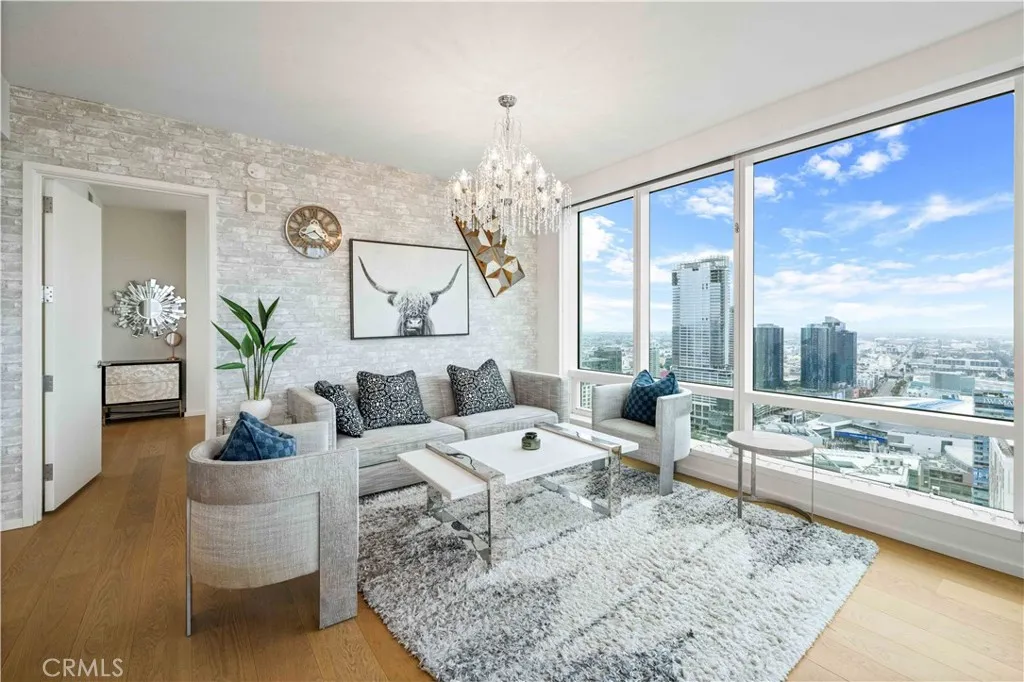 Experience elevated luxury on the 41st floor at Metropolis Tower II. This stunning 2-bedroom, 2-bath corner residence offers sweeping, multi-directional views of the DTLA skyline, Hollywood Hills, and dramatic sunsets through floor to ceiling windows that fill the home with natural light. The open layout features wide plank oak flooring, high ceilings, and a beautifully designed gourmet kitchen with Caesarstone countertops, custom soft close cabinetry, and premium Miele & Bosch appliances. The spacious primary suite includes a walk-in closet and a spa inspired bath with sleek contemporary finishes. Both bedrooms capture breathtaking views. Metropolis offers one of DTLAs best amenity collections, including a resort-style pool, cabanas, sky garden, fitness & yoga studio, billiards lounge, business center, putting green, childrens play area, dog park, plus 24/7 lobby attendant and concierge. Located steps from Crypto Arena, LA Live, the Financial District, South Park, world-class dining, shopping, and entertainment. Metropolis offers unmatched urban conveniences. Luxury high-rise living at its finest, welcome home to Tower II at Metropolis.