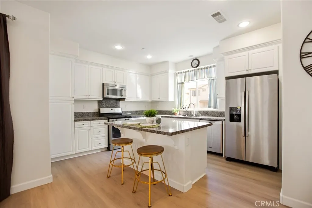 Newly Installed SPC Wood Flooring on the Two Levels. Beautiful 2016 Built - End Unit in the Gated Nexus Community by William Lyon Homes... This beautiful Tri-level End Unit home features 3 bedrooms, 2.5 bathrooms, Plus a den and 2-car attached garage. The entry level has direct access to the 2 car garage and boasts a beautiful den area which is being used as an office area. The second floor is an open concept with a large Living room, Dining room, kitchen with Granite counters, large island, white cabinetry and stainless steel appliances, and a private balcony to relax with your favorite drink. Also a convenient 2nd floor half bath. Located on the 3rd floor is the master bedroom , bathroom and a walk in closet, 2nd and 3rd bedrooms, a full bathroom and convenient laundry area. Enjoy the community pool, spa, playground and barbecue area. Walk able distance to the 24 Hours Fitness, Shops and Restaurants. Easy access to the 15 freeway and centrally located between the 60 and 91 freeways.