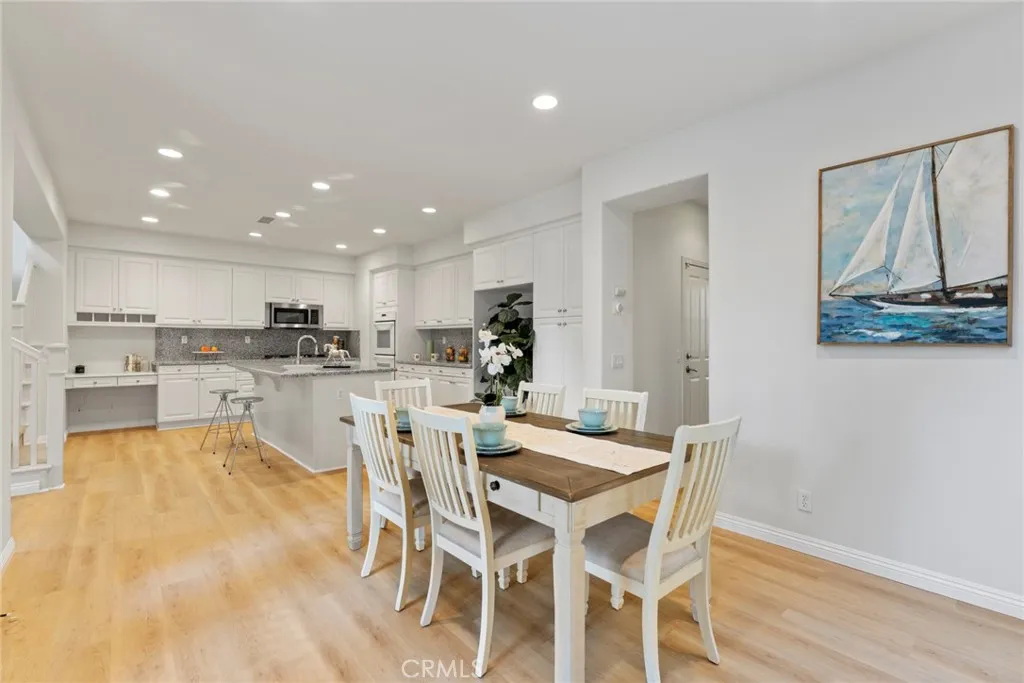 Beautifully refreshed detached home in one of Irvines most desirable communities. This 4-bedroom, 3-bath, 2,299 sq ft home sits directly across from a serene community park, offering open views and abundant natural light. Updates include new wood flooring, new carpet, and fresh interior & exterior paint, creating a move-in-ready environment. The open-concept main level features a spacious living area and a versatile downstairs bedroom with full bath. Upstairs, the primary suite is a true retreat with a double-door entry to a large private terrace overlooking the park, plus a walk-in closet, dual vanities, soaking tub, and separate shower. Two additional bedrooms are well-sized and share a thoughtfully designed bathroom. Upstairs laundry adds convenience. A welcoming front yard enhances curb appeal. The attached two-car garage provides ample parking and storage. Exceptional locationshort walk to elementary school, community center, pools, parks, and trails. Resort-style amenities and easy access to shopping, dining, and freeways. A rare opportunity to own a detached home with park-front views and private master terrace. A must-see!
