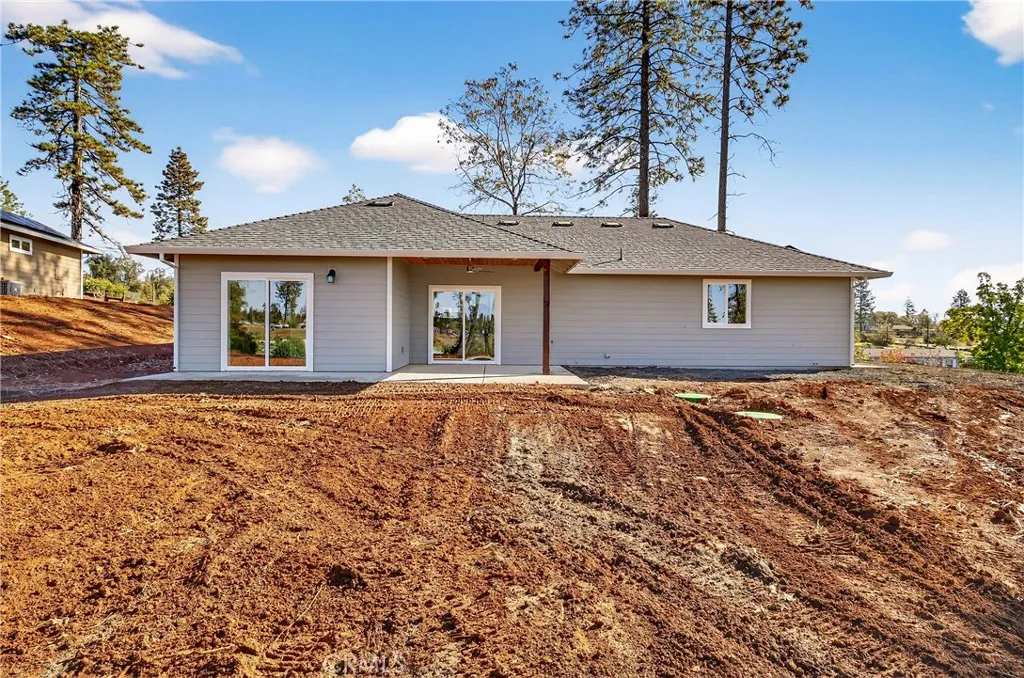 Fantastic Central Paradise location for this 2025 Custom Home, built by Frost Construction a long time Paradise builder. Great VIEWS of the Sutter Buttes, Coastal Mountain Range and the valley. The home offers Owned Solar 3.08 KW system, 7 panels with microinverters. An expansive .70 acre lot, plenty of room for a shop or outbuilding. R.V. parking with electricity. Landscaped front yard on drip system. Boasting a generous 1,021 square feet of living space, this home features top-notch craftsmanship and modern amenities. Upon entering, you'll be greeted by a charming 96 square foot covered front porch with a craftsman-style front door and custom shutters. Step inside to discover an open floor plan that seamlessly connects the living room, kitchen, and dining area. The kitchen is a chef's dream with granite countertops, stainless steel appliances, recessed LED and pendant lighting, and a stylish island for added convenience. The primary bedroom is a serene retreat with crown molding, a slider leading to the covered patio, and a well-appointed en-suite bathroom featuring granite counters and a step-in shower. The guest bedroom also offers crown molding and access to a sleek guest bathroom with granite countertops and a tub/shower combination. The home features gorgeous Vinyl Plank flooring throughout. Outside, you'll find a spacious 114 square foot covered patio with recessed lighting and a ceiling fan, perfect for outdoor entertaining. Additionally, the oversized two-car garage, measuring 23'5" wide by 25'10" deep, includes a laundry area. Plenty of space for a boat, trailer,