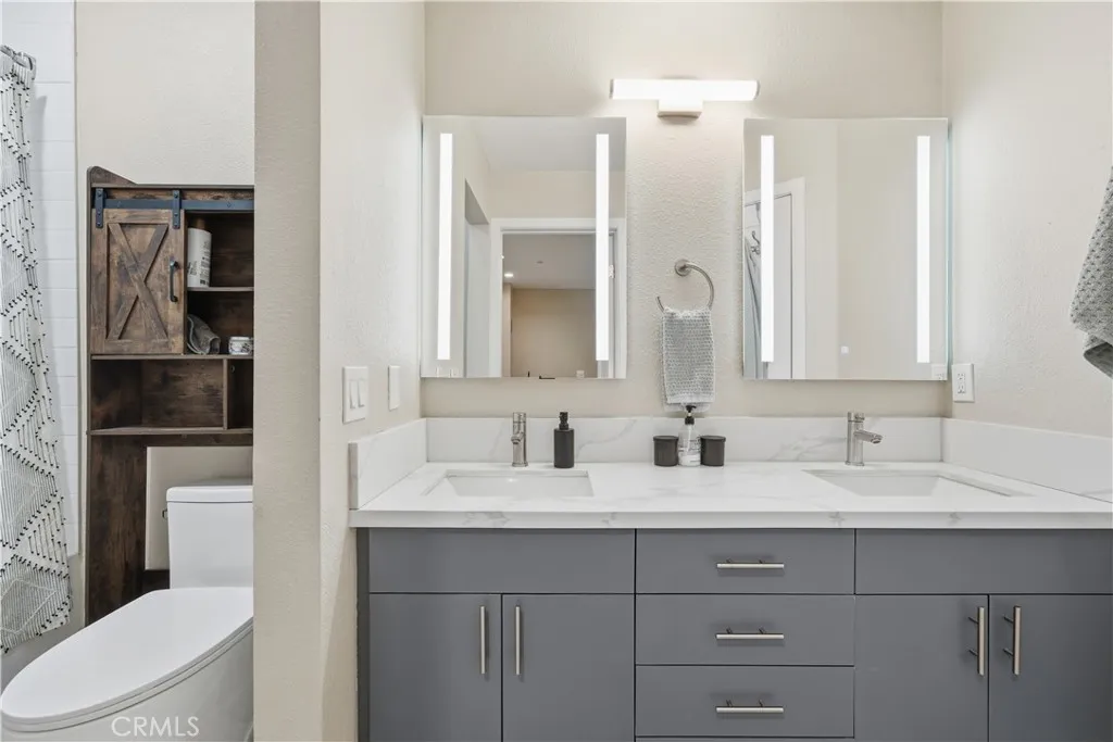 This One Will Not Last A MUST SEE! Single Level Fully Remodeled Private Corner Location This beautifully remodeled single-level home is tucked away in a private corner of a fantastic community. Finished in soft neutral tones of grey and white, this charming residence features 1 Bedroom, 1 Bathroom, a Laundry Room, and an Oversized Attached 1-Car Garage. As you enter, you're greeted by luxury grey vinyl plank flooring throughout, complemented by grey walls and crisp 5" white baseboards. The living room offers a beautifully redesigned fireplace with decorative white tile and an upgraded ceiling fan. The rooms are open, large, and spacious. The updated kitchen features plenty of cabinetry with adjustable shelving, white quartz countertops with soft grey veining, stainless steel appliances, a large stainless farmhouse sink, French-door refrigerator with in-door water and ice, gas range, microwave, and dishwashereverything needed for a highly functional and stylish kitchen. Just off the kitchen is a dedicated laundry room with standard-size stackable washer and dryer, abundant storage, and direct access to the oversized garage. An additional assigned parking space is conveniently located directly behind the garage, along with guest parking. The very large bedroom features wall-to-wall mirrored wardrobe doors, a double skylight, and windows that bring in exceptional natural light. The spacious dual-sink bathroom is beautifully upgraded with tasteful finishes. The home also includes recessed LED lighting throughout. Community Features Wrought-iron gated entry with courtyard wat