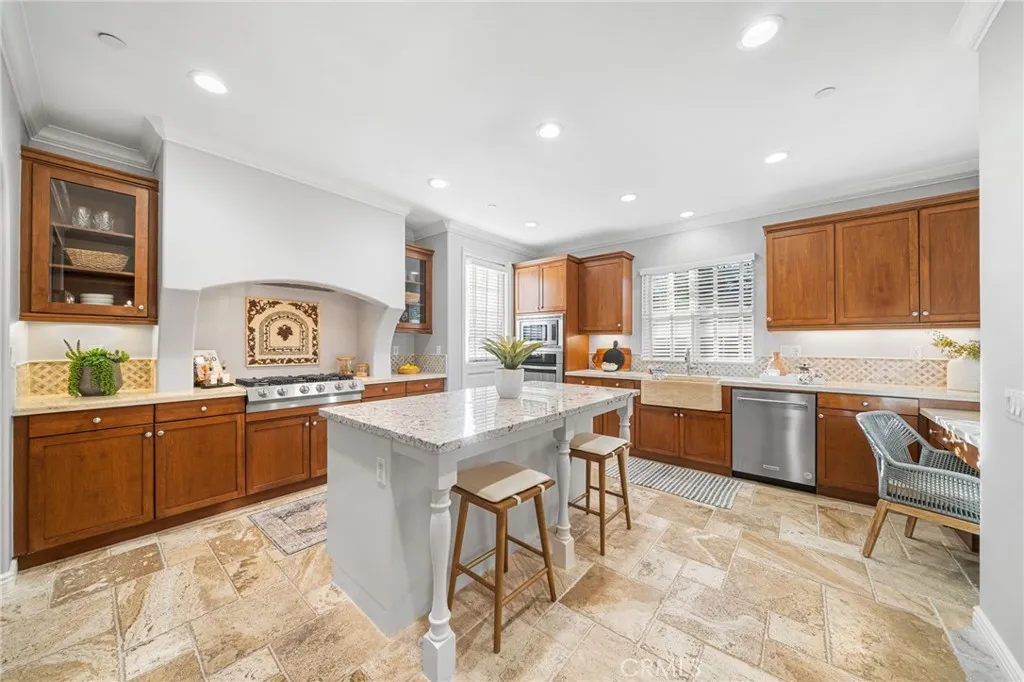 We are excited to reintroduce you to 38 Upperbendnewly updated and better than ever. This move-in-ready home in the Paloma neighborhood of Portola Springs, Irvine, offers timeless charm, modern upgrades, and exceptional livability. Beyond the private gated entry, a flagstone courtyard and side patio create the perfect first impression. Inside, the open-concept layout connects the living, dining, and kitchen areas in a bright, inviting flow. Exposed wood-beamed ceilings, crown moulding, and a freshly painted white brick fireplace bring warmth and character, while wide-plank mahogany hardwood floors pair beautifully with the natural stone tile found in the kitchen and baths. The chef-inspired kitchen features quartz countertops, high-end stainless steel appliances, and a spacious walk-in pantry. Whether youre preparing dinner for two or hosting guests, the design perfectly balances style and function. Upstairs, a generous loft offers flexible space for a home office, playroom, or cozy lounge. The primary suite is a true retreat with its own private patio, a walk-in closet, and a spa-style bath complete with dual sinks, a soaking tub, and an upgraded shower. Two secondary bedrooms share a Jack-and-Jill bath, and the upstairs laundry room adds everyday convenience. With only one shared wall at the first level, enjoy the comfort of added privacy. Additional upgrades include fresh interior paint, updated LED recessed lighting, and new designer-selected furnishings (with an option to include them in the purchase). The two-car attached garage, double-pane windows, and upgraded ceil