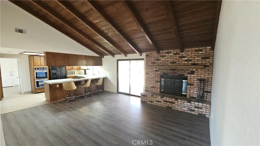 Location, location, LOCATION! This unique & large ranch style home sits on a 3/4 acre corner lot. Featuring breathtaking views of the mountains & valley and backs up to the buttes with full access. Having only 2 owners, this property has been well cared for and shows true pride of ownership! The interior encapsulates an open floorplan with a massive laundry room. The family room showcases high wood planked vaulted ceiling & a stunning brick cascaded wood burning fireplace with a gas starter giving it that special cozy atmosphere. The master bedroom includes a walk-in closet, sizeable bathtub and a separate spacious shower. Brand new paint, flooring & modern ceiling fans throughout the home. Newer roof & septic, as well as, dual AC & heating unit along with a separate swamp cooler. The land encompasses native Joshua trees, cross fencing in the backyard, storage shed and plenty of space for animals and/or a garden. This property is move-in ready and a MUST SEE! Don't wait, get your offers in today!