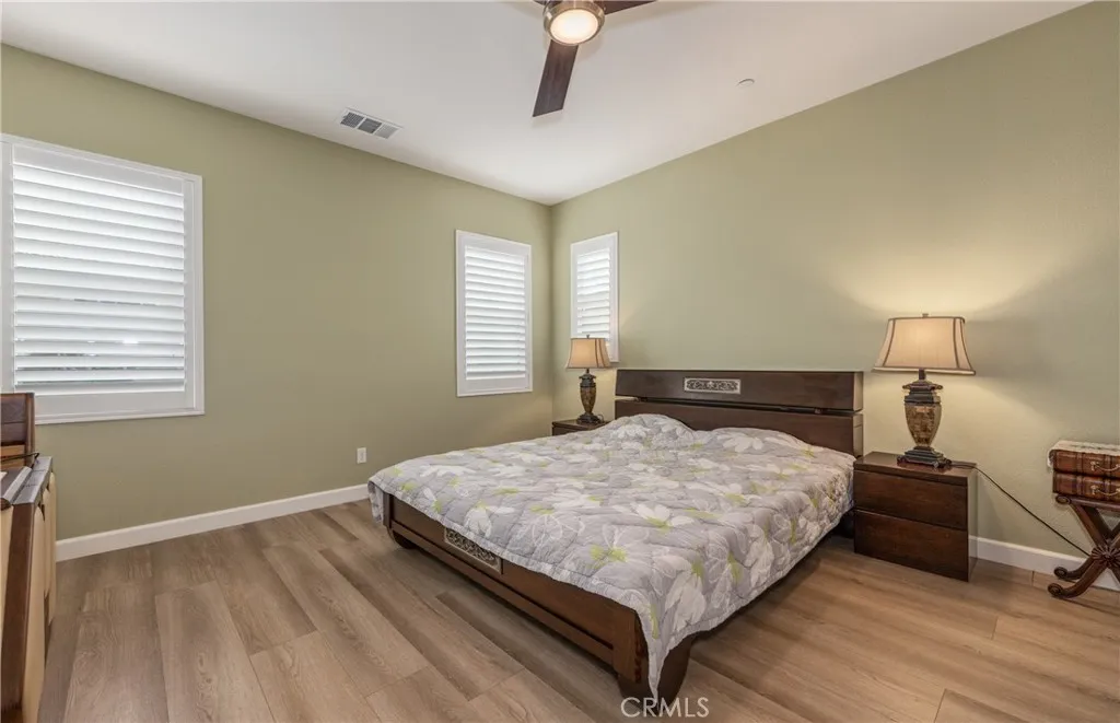 MAIN FLOOR MASTER SUITE HOME IN LOMA LINDA. Experience modern comfort and timeless design in this beautifully crafted two-story home, ideally located in the serene and highly desirable city of Loma Linda. Thoughtfully designed for both convenience and versatility, this residence features a spacious main-floor master suite plus two additional bedrooms on the same level, offering the perfect layout for multi-generational living or extended-stay guests. The heart of the home is the open-concept great room, where the gourmet island kitchen shines with built-in stainless-steel appliances, a conveniently located pantry, and abundant counter space for everyday living or entertaining. Adjacent to the kitchen, the sunlit dining area opens through a large sliding glass door to the California Patio a beautifully designed covered outdoor retreat built-in by the builder for seamless indoor-outdoor living. Upstairs, a spacious loft provides a comfortable second living space, alongside an additional bedroom and full bath, creating a private guest suite or quiet workspace. This SMART HOME comes equipped with a fully paid solar system, premium window coverings, and energy-efficient, water-saving desert landscaping highlighted by decorative boulders and drought-tolerant plants. The tranquil backyard oasis is perfect for family gatherings, gardening, or simply unwinding under the open sky. Nestled in a peaceful neighborhood with no overhead power lines or train noise, this home offers the rare balance of tranquility and convenience just minutes from Loma Linda University Health, the VA Hosp