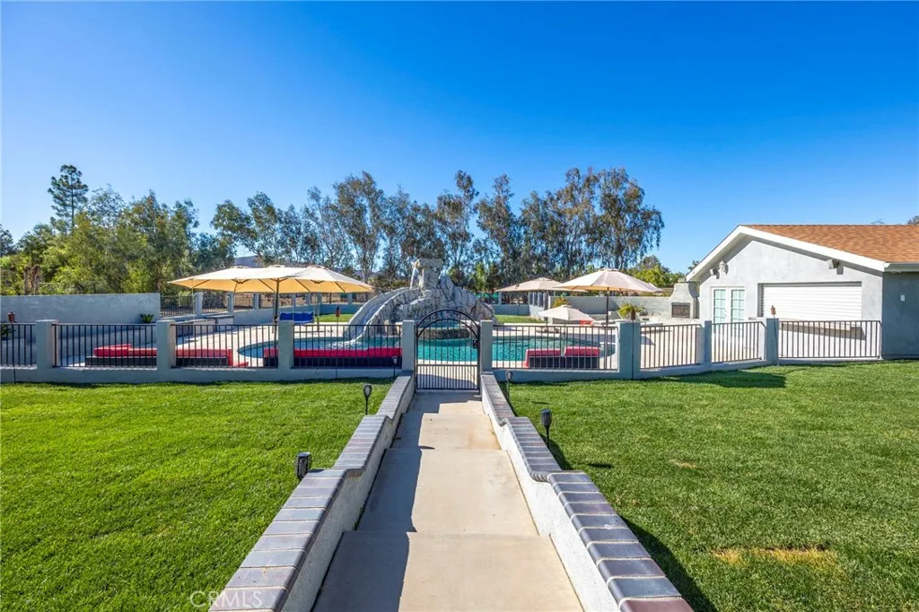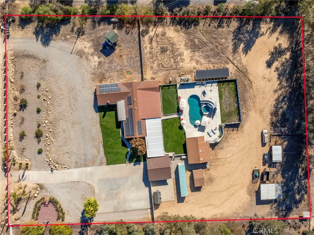 Private Ranch Estate on Over Two Acres Zoned A-1. Experience the best of country living with modern convenience at 30245 Santa Fe Street. This spacious single-story home sits on more than two acres of usable land offering wide-open space, privacy, and multiple improvements ideal for entertaining, multi-generation living, or hobby use. Interior Features: Bright and inviting floor plan with expansive living and dining areas, large kitchen with generous cabinet space and breakfast bar, walk-in pantry, 6 bedrooms and 3 bathrooms to accommodate family or guests, durable tile and laminated flooring throughout for easy maintenance, inside laundry, Energy-efficient home equipped with solar system for the residence. Outdoor Living: Sparkling in-ground pool with LED lights with a separate solar heating system for year-round enjoyment, spa, surround sound in pool area, detached pool house with a bathroom perfect for guests, home office, or studio use. An outdoor shower. Expansive covered patio with built-in-bbq, ideal for outdoor dining and relaxing with a fire pit. Additional seating area near the pool with an outdoor fireplace. Multiple RV hookups. Level 2 EV charger in the garage. Multiple storage units and outbuildings for tools, hobbies. Horse shed/corral. Wide driveway and gated access with plenty of room for RVs, boats, and trailers, fully fenced property with usable land great for animals, gardens, or expansion. Multiple fruit trees and a beautiful rose garden. Additional Highlights: Two solar systems (home + pool) to help lower energy cost Located in a quiet area of Hemet w