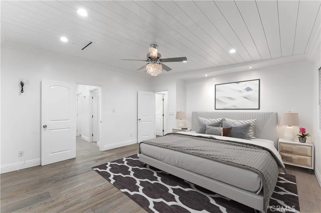 Welcome to 6418 Ringsdale Court, a true standout nestled at the end of a quiet cul-de-sac in one of Bakersfields most desirable neighborhoods. Sitting on an expansive 10,454 sq ft lot, this stunning 3-bedroom, 2-bath home has been transformed with over 85% premium upgrades, offering the kind of detail and craftsmanship you rarely see outside of luxury estates. From the moment you arrive, youll notice the striking curb appeal with IPE hardwood accenting the front exterior and a $3,500 custom oversized entry door that makes a lasting first impression. Inside, be greeted by engineered cedar wood flooring, elegant crown molding, and coffered ceilings that create an air of sophistication throughout. The open-concept kitchen is a dream come true, boasting Calacatta quartz countertops, a large island with waterfall edges, high-end appliances, and a walk-in pantry with a frosted glass door. Seamless design and luxury finishes continue into the living area, complete with built-in surround sound wiringalso extended to the master suite and covered patioperfect for entertaining or creating your own immersive media experience. The spacious primary suite features dual vanities, a spa-inspired layout, and abundant natural light. Additional highlights include dual-pane windows (installed in 2021), new copper plumbing, linear vents for modern elegance, a state-of-the-art AC system (installed in 2021), and a fully fire-resistant exterior clad in James Hardie siding for peace of mind. Outside, enjoy the low-maintenance raised deck, a pristine vinyl pool (installed just 3 years ago), and RV ac