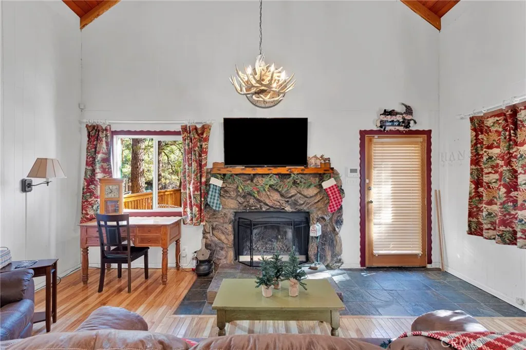 Tucked among the pines of Sugarloaf, this charming vintage cabin offers the perfect blend of rustic character and cozy comfort. Vaulted beam ceilings, warm wood finishes, and classic cabin details create an inviting atmosphere that feels like stepping into a timeless mountain retreat. Fully furnished and thoughtfully arranged, the space easily accommodates up to six guests, making it ideal for families and friends looking to unwind together. A handy outdoor shed provides extra storage for gear, keeping everything organized for your next adventure. Conveniently located close to the lake and ski resorts, this cabin offers quick access to the best of Big Bears year-round recreationyet its far enough from the busyness of the North Shore and Village areas to preserve your sense of peace and privacy. Here, you can spend your mornings on the slopes or by the water, then return to a quiet hideaway where laughter fills the living room and evenings are spent relaxing under starry skies. Whether for holiday gatherings, weekend escapes, or creating new family traditions, this cozy getaway captures the warmth and magic of a true mountain escape.