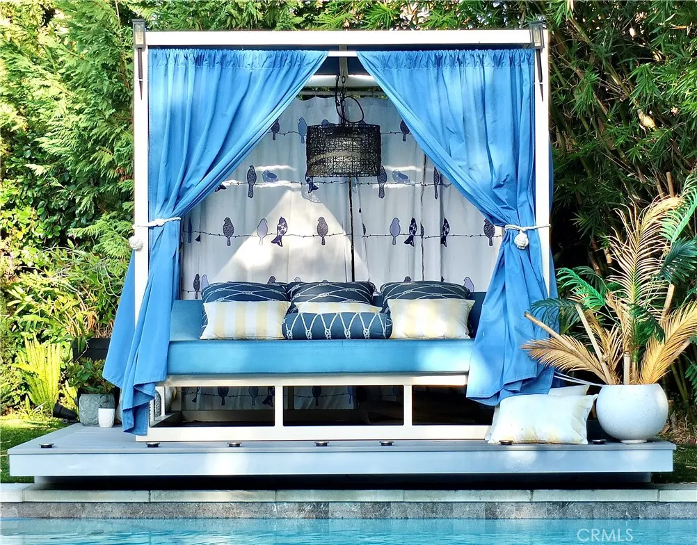 This beautifully updated modern, mid-century ranch has been transformed into a sleek, contemporary retreat. Meticulously renovated by its owners, every element has been thoughtfully crafted to celebrate seamless indoor-outdoor living. A sophisticated living room with a striking fireplace offers a warm, inviting space that overlooks sparkling pool and rear grounds. The chefs kitchen, appointed with custom cabinetry, premium appliances, a large center island with abundant storage, opens to the dining and family room-creating an effortless flow for both everyday living and entertaining. Expansive sliding glass doors connect the interior to the pool and lounge area, blending the indoors with the outdoors in perfect harmony. The serene primary suite features a spa-inspired ensuite bathroom and a sliding glass door that leads to a secluded side garden, ideal for morning coffee or quiet reflection. A private guest wing includes two additional bedrooms, a beautifully designed bathroom, and a convenient laundry room with washer and dryer. Recent upgrades in 2025: HVAC, roof and solar power. Additional amenities include; extensively remodeled front and rear yards, outdoor lighting and irrigation system, custom garage door, Breeze block wall, and tankless water heater. Outside, the resort-style backyard invites relaxation, complete with a custom-designed, salt -water pool, private cabana and spa, multiple lounge areas, and tranquil fountains surrounded by lush, mature landscaping. Every detail reflects refined modern living- sophisticated, serene, and designed to enjoy the best of the
