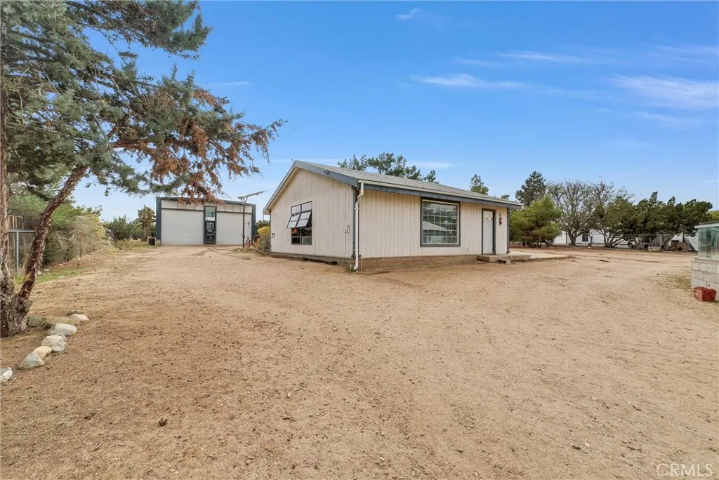 Welcome to your personal sanctuary where hobbies and daily life harmoniously coexist on nearly an acre of desert freedom. This thoughtfully designed three-bedroom, two-bathroom manufactured home offers 1,355 square feet of comfortable living space, perfect for those who appreciate both indoor comfort and outdoor possibilities. Step inside to discover ceramic tile and light oak laminate flooring flowing throughout spacious rooms. The generous living area centers around a cozy wood-burning stove, creating the perfect gathering spot for family evenings. The well-appointed kitchen boasts abundant storage solutions, while the open dining room seamlessly connects your culinary adventures with conversation. Practical amenities include an interior laundry room, central air conditioning, and ceiling fans ensuring year-round comfort. The real showstopper lies beyond your back door an impressive 30'x60' steel workshop featuring massive roll-up doors and abundant natural light streaming through numerous windows. This versatile space accommodates recreational vehicles, classic car collections, equipment storage, and future expansion dreams. The oversized 30'x30' garage provides additional covered parking and storage options. Security meets convenience with an electric gate controlling property access, while the expansive lot offers endless possibilities for customization. Whether you're passionate about vintage automobiles, weekend adventures with recreational vehicles, or simply crave space to breathe and grow, this property delivers. Located in Phelan's welcoming community, you'll fi