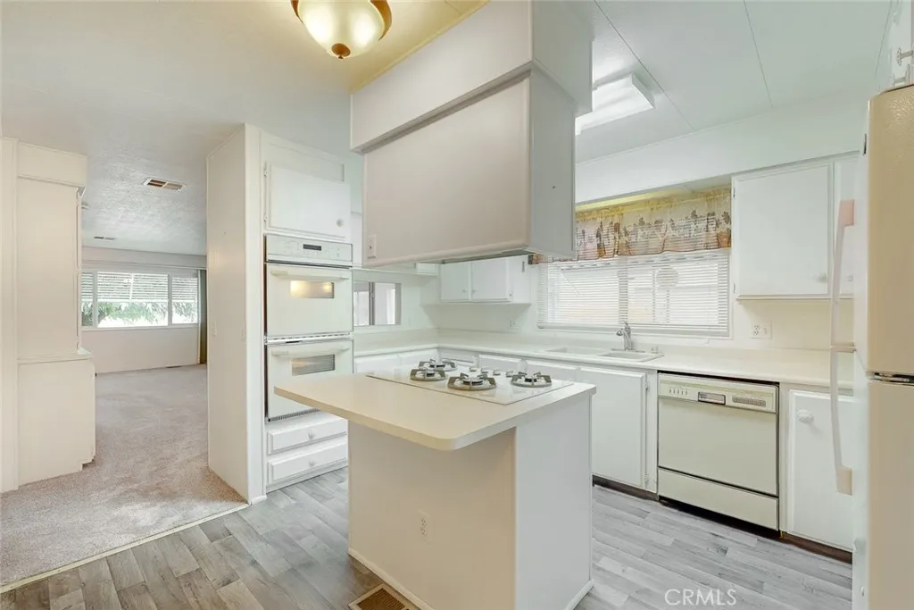 Get ready to fall in love with this exceptionally clean 2-bedroom, 2-bathroom manufactured home, securely set on a 433A foundation in the desirable Kelly Ridge area of Oroville! This home is ready for its next owner with big-ticket upgrades already handled! You'll stay comfortable year-round thanks to the HVAC system replaced in 2022 and the new water heater installed in 2023. Step inside and enjoy the fresh feeling of new living room carpet from 2023 paired with beautiful, new luxury vinyl plank flooring in the kitchen, hall, and laundry areas. Plus, peace of mind comes with knowing all the plumbing was replaced in 2011, and the home features double-pane windows throughout for energy efficiency. The foam roofing is approximately 11 years old. The kitchen is a chef's dream, boasting tons of storage, including a walk-in pantry, a gas range, double ovens, and all appliances, including the dishwasher and refrigerator, are ready to go. You'll also appreciate the separate indoor laundry room, complete with a washer, electric dryer, and extra storage space. The large living room is flooded with natural light, and the dining room features charming built-ins and a convenient pass-through window to the kitchen. The large primary bedroom offers abundant built-in storage and a generous closet, along with an ensuite bathroom featuring a walk-in shower. A second, well sized bedroom, sits off the kitchen. An added bonus is the sunny, enclosed sunroom off the living room, with double-pane windowsa perfect spot to relax! Outside, this clean property is fully fenced, and there is a spacious