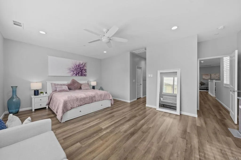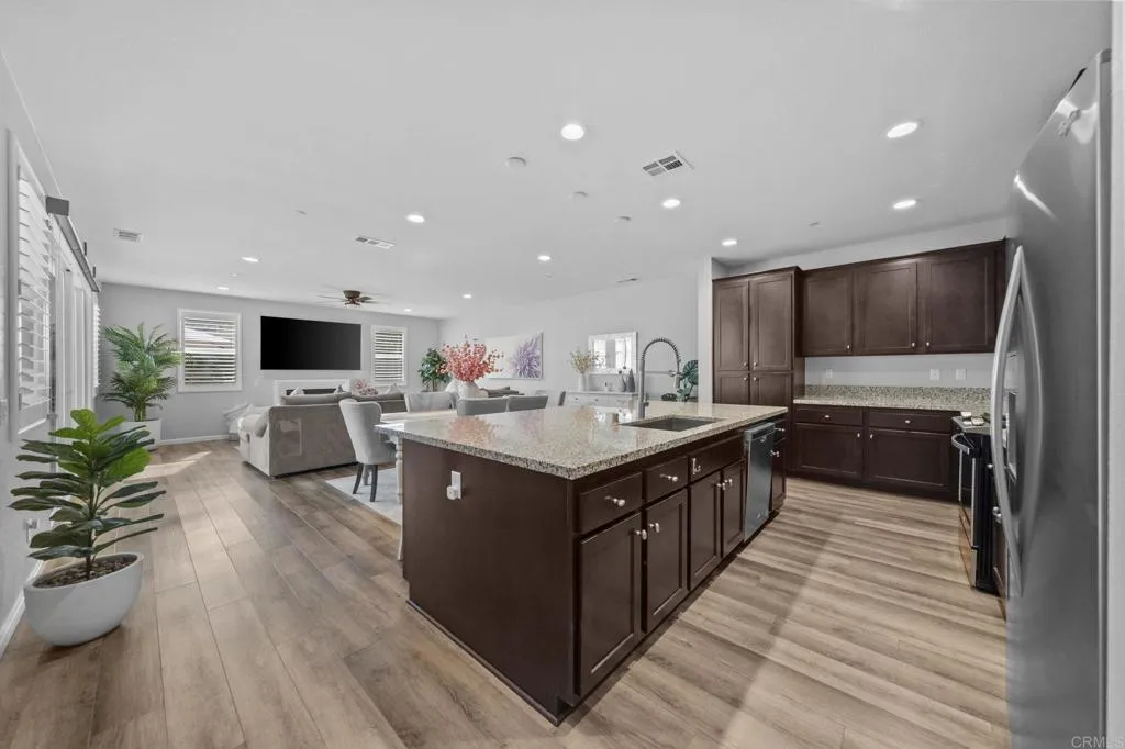 Built in 2019, this 2732 sq ft, four-bedroom, five-bath single family residence blends modern architecture with effortless livability. Sun-filled open spaces, sharp lines, and thoughtful finishes create a home that feels both refined and welcoming. The main level features a full bedroom suite, offering flexibility for guests or multigenerational living. Zoned AC cooling with a separate QuietCool system. Outside, a covered entertaining area overlooks the sleek modern pool and spacious backyard making it an ideal setting for gatherings, relaxation, or everyday indoor-outdoor flow. With its turnkey condition, cohesive design, and prime livability, this home delivers a standout modern lifestyle from the moment you step inside.