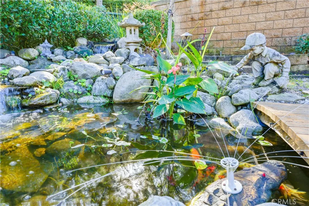 Welcome to the highly sought-after gated community of the Presidential Collection in Fullerton! This exceptional single-level former model home has never been sold before and with 3,141 sq. ft. of refined elegance. Designed with impressive high ceilings, engineered wood flooring throughout, recessed lighting, custom paneling, and crown molding, the home exudes timeless sophistication from the moment you enter. The open floor plan features 3 bedrooms, 2 full bathrooms and a half bath, a formal living room, formal dining room, a den or office space, spacious family room, and a bright breakfast nook. The gourmet kitchen is perfect for entertaining, complete with a built-in refrigerator and generous workspace. The luxurious primary suite provides a true retreat with a massive spa-inspired bathroom and a private workout room and a custom closet system. Step outside into your own resort-like oasis boasting a tranquil pond, in-ground hot tub, barbecue island, gazebo, and lush professional landscapingperfect for relaxation or hosting unforgettable gatherings. Additional highlights include an inside laundry room, epoxy-coated garage flooring, direct garage access, and an energy-efficient solar system. Located within top-rated Fullerton schools and just minutes from Brea Mall, Coyote Hills Golf Course, Downtown Fullerton, freeway access, parks, shopping, and dining. With low HOA dues, elegant finishes, and an unbeatable location, this home is truly a must-see!