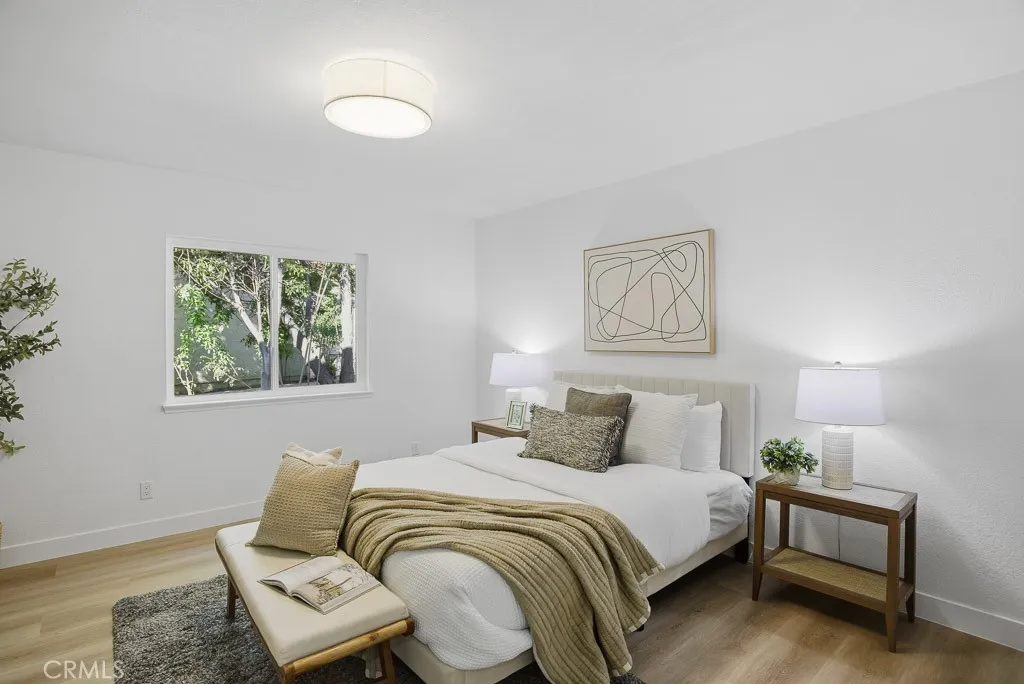 A beautifully renovated single-level home located in the highly desirable 55+ gated community of Camarillo Springs. This thoughtfully redesigned residence features brand-new flooring throughout, custom-tiled bathrooms, a new HVAC system and condenser, and a fully updated kitchen with quartz countertops, modern cabinetry, and new stainless-steel appliances including a range, microwave, hood, and dishwasher. The open-concept layout showcases vaulted ceilings, recessed lighting, a classic brick fireplace, modern LVP flooring, and newer dual-pane sliders and windows. The spacious primary suite offers ample room and natural light, direct patio access, vaulted ceilings, and a generous walk-in closet. The ensuite bathroom includes dual sinks, updated fixtures, and a tiled walk-in shower. The secondary bedroom features ample storage and direct access to a remodeled Jack-and-Jillstyle bathroom. Outdoor living includes a low-maintenance backyard with mountain views, new walking pavers, and a small bocce ball area ideal for relaxation or entertainment. Additional highlights include an indoor laundry room with storage and a direct-access garage with custom cabinetry, a workbench, epoxy flooring, and a contemporary garage door. The property also features a full-size driveway accommodating two cars side-by-sidea rare advantage in this community where many lots offer limited driveway space. Camarillo Springs provides resort-style amenities including a clubhouse, pool, spa, fitness areas, walking trails, seasonal creek, and proximity to the Camarillo Springs Golf Course. Conveniently locat