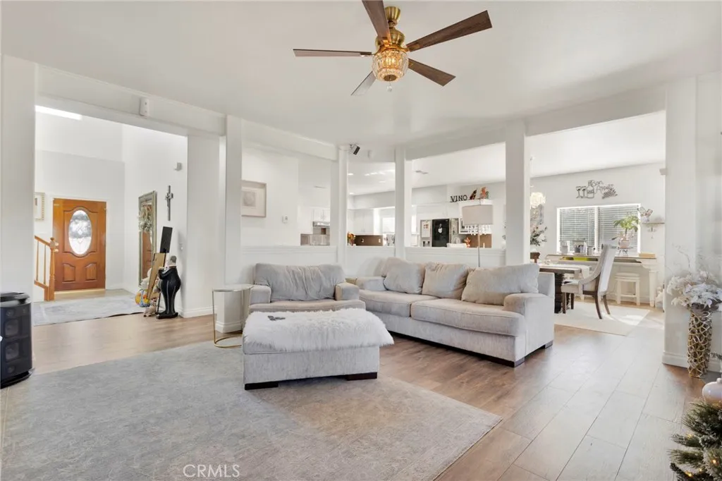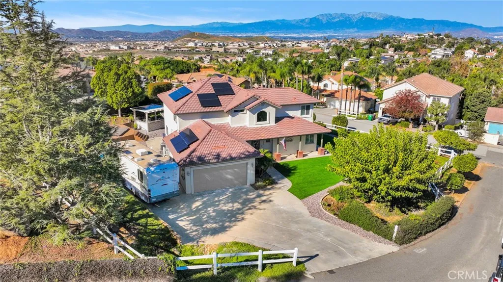 Where Panoramic Beauty Meets Everyday Living! This entertainers dream is situated on over a half-acre in one of Canyon Ridge Estates most secluded and sought-after cul-de-sac locations. Enjoy breathtaking rolling-hill and city-light views from this serene South Riverside retreatcomplete with PAID SOLAR for exceptional energy savings and efficiency. The backyard has been newly transformed with top-of-the-line artificial turf, an above-ground spa with a custom deck, and a beautiful outdoor living area featuring a stone-built fireplace. The impressive stone outdoor kitchen includes a built-in BBQ, refrigerator, sink, ample storage, and a covered patioperfect for year-round gatherings. Lush landscaping and mature fruit trees (multiple varieties of orange, apple, lemon, key lime, guava, grapefruit, and mandarin) line the property, creating a peaceful setting that feels worlds away yet close to everything. Inside, natural light fills the inviting foyer and flows into the living room with a beautifully updated fireplace faade. The open floorplan continues into the spacious dining area and kitchen, which features a grand island, stainless steel appliances including a double oven, full granite backsplash, and well-appointed cabinetry. A custom walk-in pantry and dedicated laundry room with sink and storage enhance function and convenience. The lower level also offers a generous powder room and a downstairs primary suite with double-door entry, abundant sunlight, walk-in closet, and a large ensuite bathroom with dual sinks, granite counters, separate shower, and soaking tub. Upstairs