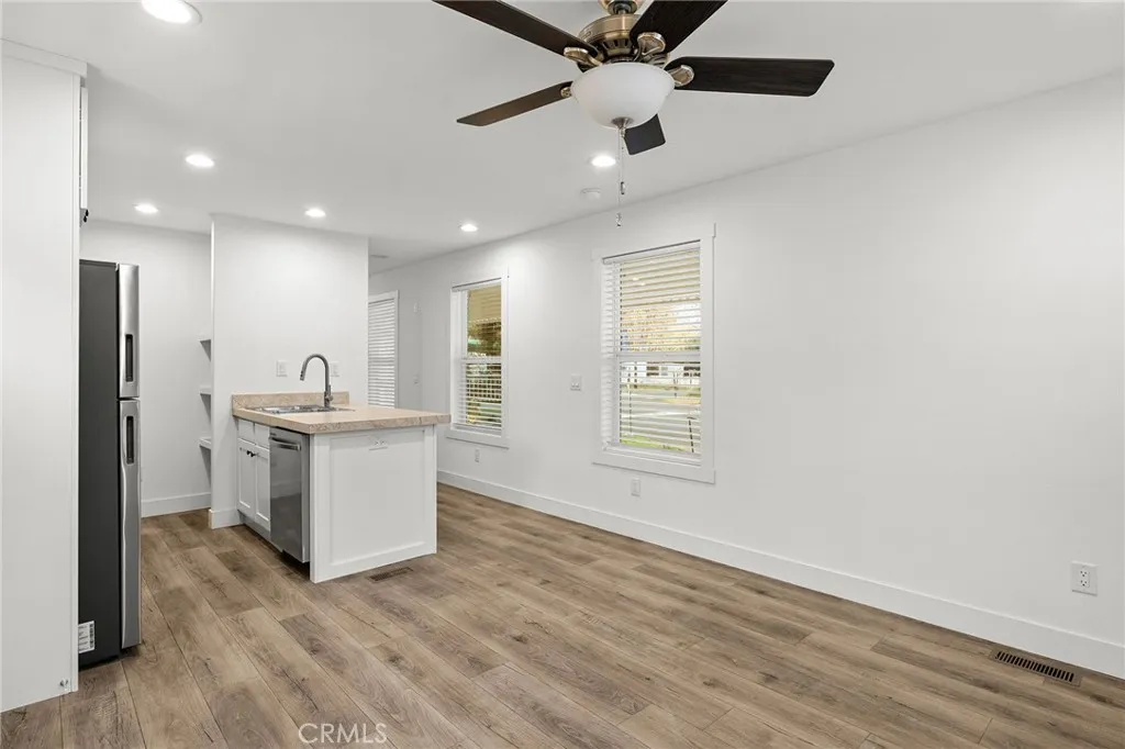 Welcome to 567 E. Lassen Ave, Space 102, a charming and comfortable manufactured home in a well-loved 55+ community that offers both convenience and calm. Just minutes from shopping, dining, freeway access, and transportation options, this location makes everyday living easy while still giving you a peaceful place to call home. Step inside and youll immediately feel the bright and airy atmosphere. The open layout allows the living room and kitchen to flow together seamlessly, creating a welcoming space perfect for relaxing or hosting company. The kitchen features stainless steel appliancesincluding a gas stove, plus additional shelving ideal for storing small appliances or creating a personalized coffee bar. Down the hallway, youll find two bedrooms and a full bathroom, along with a dedicated laundry space for added convenience. The primary bedroom sits at the back of the home and includes a step-in closet and natural light that makes the room feel comfortable and inviting. Outside, youll enjoy the benefits of a larger lot size typical of this park, providing extra breathing room and outdoor space compared to many manufactured home communities. As part of this friendly 55+ neighborhood, residents also enjoy access to the community pool, clubhouse, open grassy areas, and ongoing social activities that help bring neighbors together. Whether youre downsizing, simplifying, or looking for a peaceful place to settle into, Space 102 offers the comfort, convenience, and community youve been waiting for.