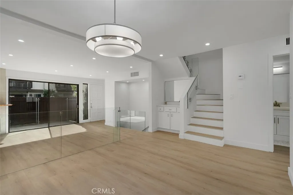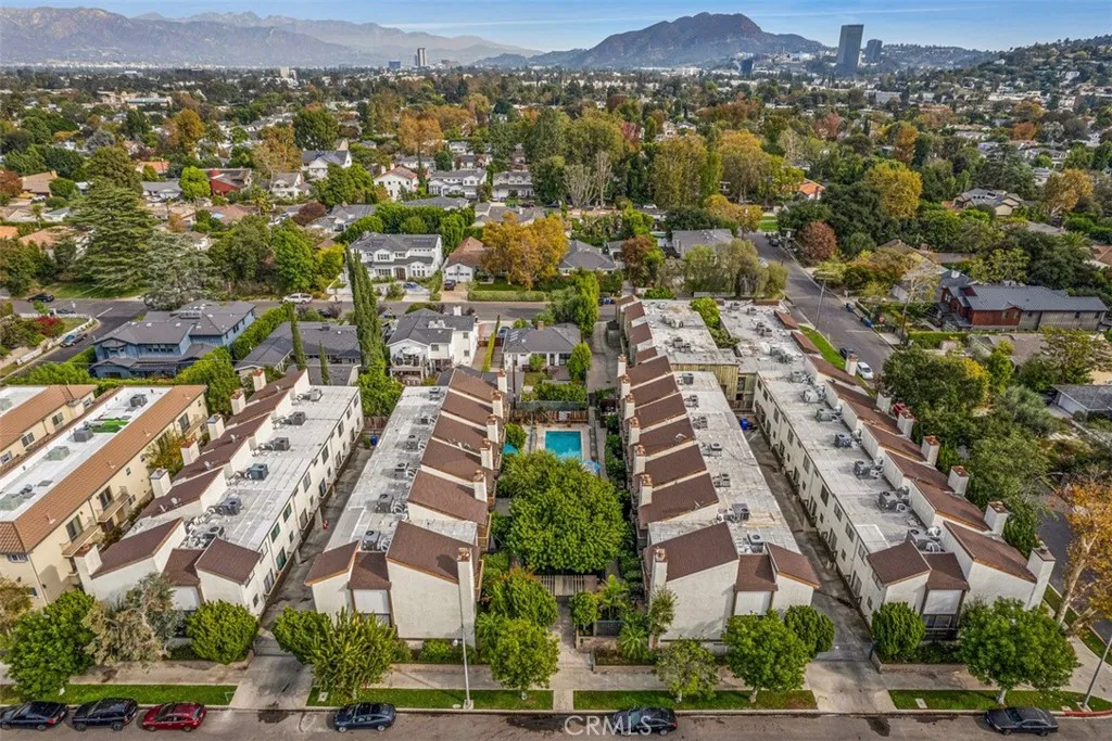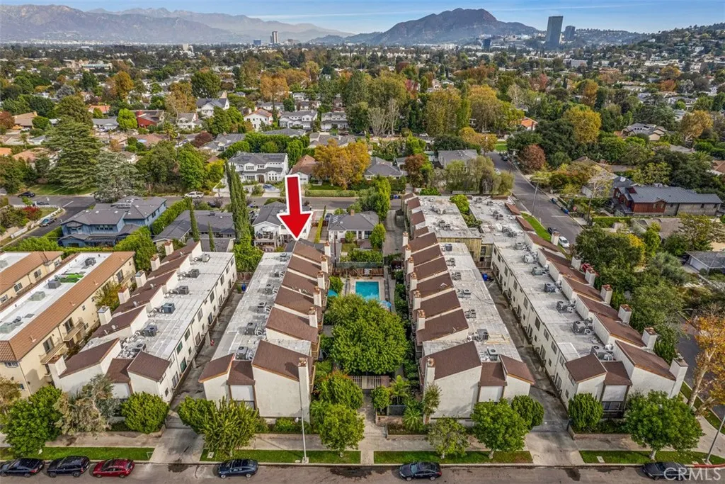 Nestled among the tree-lined streets of Colfax Meadows and within the boundary of the highly sought-after Carpenter Community Charter School, this spacious and light-filled townhome is on the market for the first time in over 30 years! Nearly every surface of this almost 1,800 sq. ft. end unit has been beautifully updated and ready for its new owner to make it their own. Abundant natural light fills the home and designer LVP flooring flows throughout. Upstairs, in addition to 2 secondary bedrooms, youll find a stunning primary suite with open-beam ceilings, two large closets, and a balcony overlooking the courtyard and pool. The main level features a powder room, generous size living and dining areas, and a fully renovated kitchen with an eat in nook, brand-new cabinets, light gray quartz countertops, designer backsplash, and all-new stainless-steel appliances. The living room centers around a floor to ceiling smooth coat stucco fireplace with clear fire glass and a natural wood mantle, opening to a private patio with a new fence enclosureperfect for dining al fresco or a small garden. Downstairs, the large direct-access two-car garage with new epoxy flooring leads to a flexible bonus space with laundry hookups and new tile floorsideal for a home office, gym, game room, or creative studio. Additional upgrades include all-new recessed lighting, new ceiling fans in the bedrooms and kitchen, new mirrored closet doors, modern frameless glass stair railings, and generous storage throughout. Located in one of Studio Citys most desirable neighborhoods with a thriving community, th