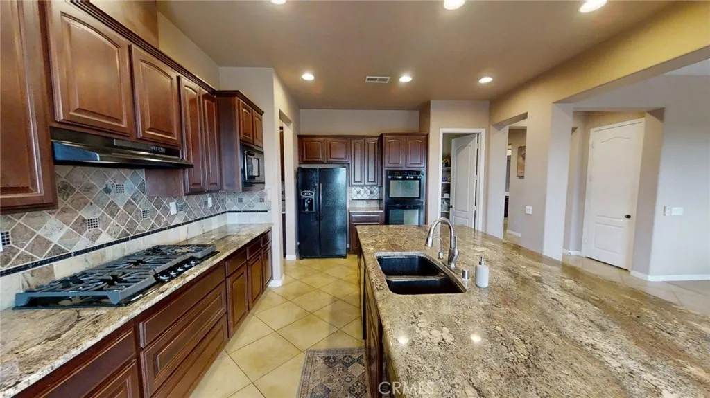 Discover luxury living in this expansive 4,815 sq ft estate located in the highly desirable Mockingbird CanyonAlicante community. Situated on a quiet cul-de-sac, this home offers stunning backyard views, a peaceful setting, and exceptional space both inside and out. The thoughtfully designed floor plan features 5 bedrooms, including a main-level bedroom, 4.5 bathrooms, and abundant natural light throughout. The open kitchen is ideal for entertaining, offering granite countertops, premium appliances, a large center island, a butlers pantry, and a walk-in pantry. The family room includes a cozy fireplace and oversized sliders that open to the patio for seamless indoor-outdoor living. Upstairs, the spacious primary suite features dual walk-in closets and a spa-inspired bathroom with dual vanities and a jetted soaking tub. Additional bedrooms are generously sized, and a large loft with exterior deck access provides flexible space for a game room, home office, or media room. The expansive backyard showcases mature landscaping, scenic views, and plenty of room for a future pool. Additional highlights include potential RV parking with extra concrete, a fenced dog run, a rare 3-car pull-through garage, and 12 mature fruit trees including citrus and avocado. While the home could benefit from a few modern updates, it has been exceptionally well maintained and offers incredible potential. With a low HOA and a prime Mockingbird Canyon location, this is a rare opportunity to own a spacious, scenic estate with timeless appeal.