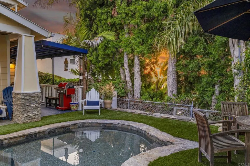 Experience coastal luxury perched overlooking the Pacific Ocean from your two beautifully designed homes. The front home features approximately 2,358 sq. ft., boasting four bedrooms and three bathrooms with a flexible floor plan ideal for multi-generational living or work-from-home flexibility. Upstairs, the expansive primary suite offers serenity and refined comfort, complete with a soaking tub, steam shower, dual sinks, abundant bespoked storage abounds, two primary closets, a dedicated shoe closet, and additional cabinetry. A bonus office/bedroom sits nearby, creating the perfect retreat for relaxation or productivity and more custom built-ins. The main level highlights two bedrooms and two baths, a spacious great room, and a chefs kitchen equipped with a GE Profile column refrigerator and freezer, Viking range and hood, marble countertops, double-drawer Fisher & Paykel dishwasher, and 25-lb. ice maker. Meticulous craftsmanship is evident throughout from the true inset cabinetry and hidden drawers to the thoughtful appliance garages and designer finishes. Luxury continues outdoors with a saltwater pool and spa surrounded by new turf and 2024 drainage upgrades. A dry bar with dual beverage refrigerators in the great room and a full laundry room open directly to this resort-style space. Three gas fireplacesincluding one at the foot of the primary bedadd warmth and ambiance throughout the home. The front home is powered by 40 solar panels (PPA approx. $0.20/kWh, transferrable) and this home is served by private parking in a two-car garage, plus an additional one-car garage
