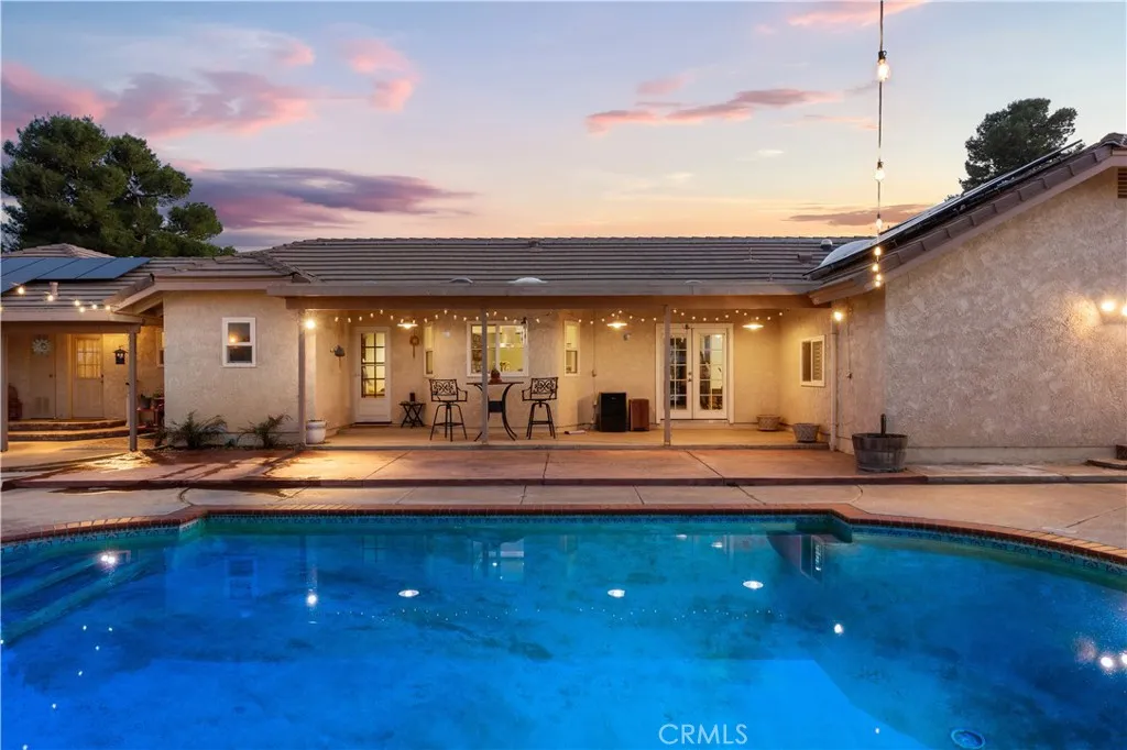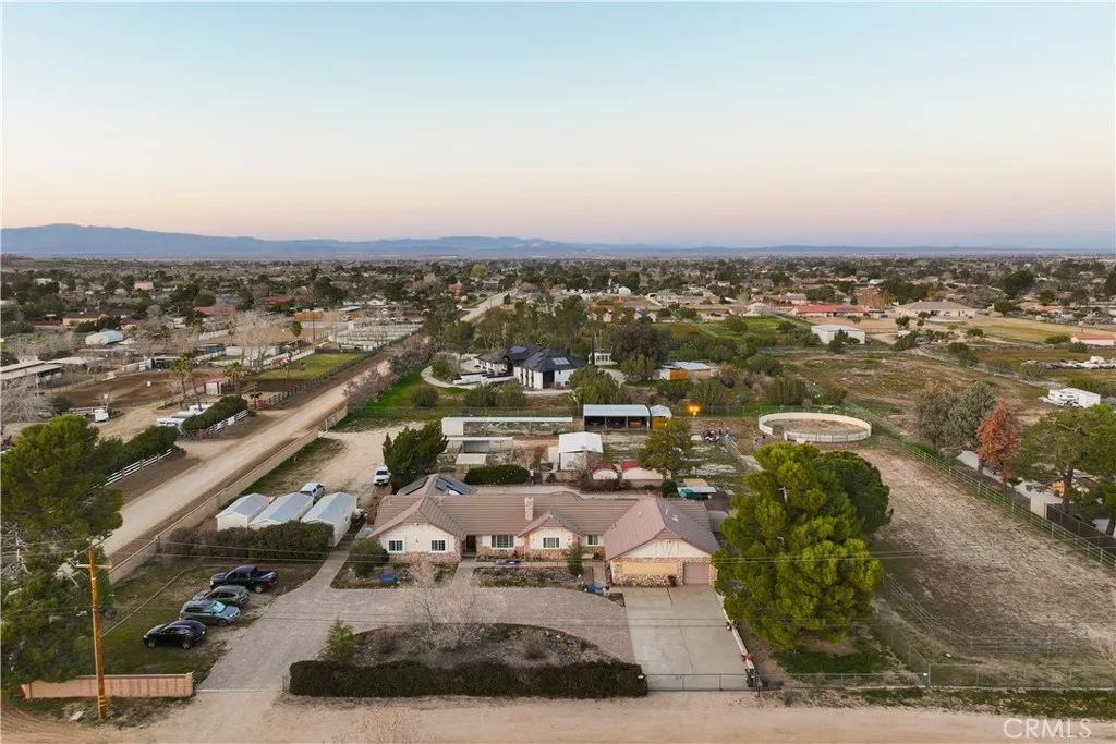 Rare West Palmdale ranch property located in the highly desirable White Fence Farms neighborhood, offering exceptional versatility with a fully built-out attached second residence featuring a full kitchen, two bedrooms, and two bathrooms, ideal for multi-generational living or income potential. The property also includes a main home with open-concept living, a remodeled kitchen with Wolf appliances, and an updated primary suite. Additional highlights include a pool and spa, RV access, and a one-car garage. Designed for equestrian and ranch use, the grounds feature 9 horse stalls, a 200-ft riding arena, 60-ft round pen, hay barn, greenhouse, chicken coop, multiple storage outbuildings, and an irrigation system, all secured behind three electric gates with a round driveway. Recent upgrades include assumable solar, new HVAC ductwork, two water heaters, updated electric gate motors, an earthquake gas shut-off, and an acid-washed pool. Conveniently located in West Palmdale near schools, shopping, and amenities, this is a true turnkey horse property combining lifestyle, flexibility, and opportunity.