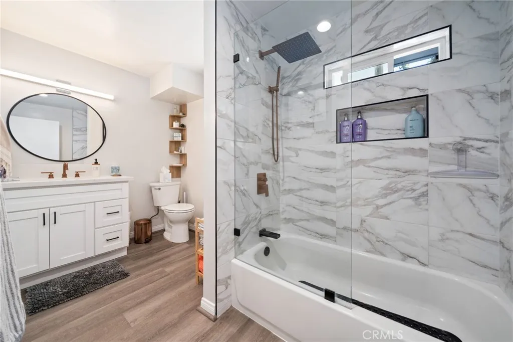 Welcome to the only gated home in this peaceful neighborhood above Belmont Heightsa private retreat that feels both thoughtfully designed and comfortably lived in. This home features three spacious bedrooms, including two primary suites on separate levels, each with its own full bathroom. Every bedroom offers a generous walk-in closet, providing both comfort and everyday functionality. Recent upgrades have been carefully chosen to enhance both style and livability, including new turf landscaping, newly permitted air conditioning, double-pane windows throughout, a tankless water heater, and updated appliances. The kitchen is anchored by a quartz waterfall island, while recessed lighting and custom wood paneling in the upstairs primary suite add warmth and character. Additional improvements such as Trex decking, a refinished roof deck, and a freshly painted exterior make the home feel truly move-in ready. The outdoor spaces are designed for both quiet moments and gathering with friends, featuring two fire features, a private hot tub, and an infrared saunaall set within a lush, private setting framed by a climbing fig wall. Its a space that feels just as suited to a slow morning as it is to an evening of entertaining. Set on an expansive lot, the property offers exceptional flexibility. Behind the secure entry, there is ample space for up to nine vehicles, or room for a boat or motorhome. The upgraded garage storage system adds practical convenience, while the newly replaced gate motor ensures ease and security. For those who enjoy staying active or connected to the neighborho