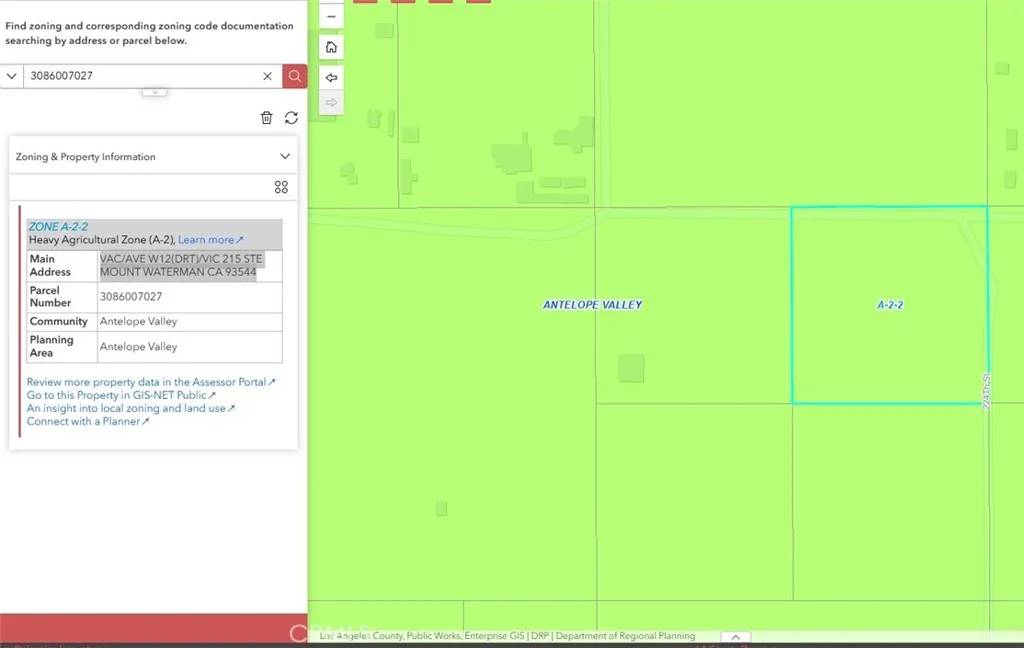 Nice property with lots of potential for development. Power lines run on two sides of the property. There may be a water company that could supply water service. (Little Baldy Water Company) you will need to contact them directly to find out the availability and costs. There is a home right across the street from this lot. (Address is: 22700 Antelope Hwy, Llano, CA 93544 that you can use to locate the land. See pictures attached as a reference) The parcel number of the land for sale is: 3086007027 and is in Los Angeles County. Nice views of the Wrightwood mountains and the Valley. You must see to appreciate. This corner lot has a very easy access it is only about a block away from the paved road ( Hwy 138). You could build your new home here to occupy or for resale as an investment. This is a cash sale. If you want me to carry the paper I will need at least $20,000.00 down and I will not finance for more than 3 years at 10% interest. Loan can be amortized for up to 10 years, with a balloon payment due in 3 years. . I will require the buyer to pay for title insurance to secure the loan. Owner is a Real Estate Broker. Buyer is advised to verify all aspects of the property including but not limited to: Property boundaries, Lot size, square footage, Availability and costs to connect to utilities, building permits, Permitted uses, etc; Information herein was obtained from what we consider reliable sources, but is not guarantied in any way by the owners /agents.