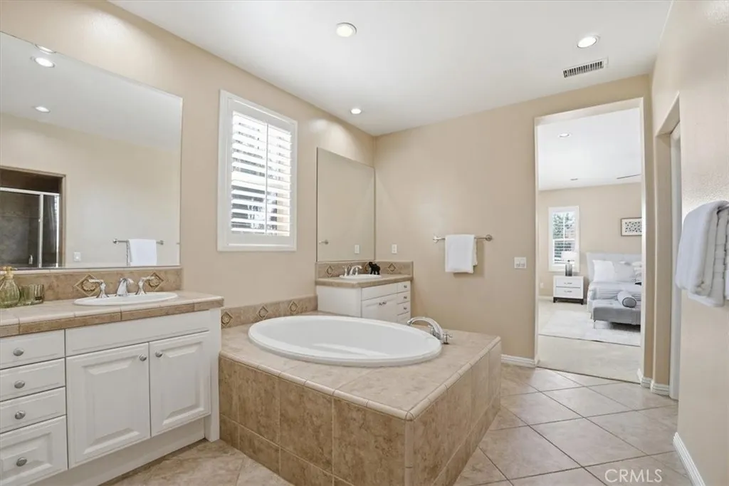 Low Tax Distinctive & well designed beautiful house at the highly desirable Edenglen community of Ontario Ranch. (4 bedrooms & 4.5 baths, over 3,000 square feet of living space). Large formal living room & dining room. Gourmet kitchen with an oversized granite island for gathering and entertaining. The family room features a beautiful fireplace and is open to the kitchen. The kitchen features granite counter tops, a center island, stainless steel appliances & a built-in double oven. Home has been wired for entertainment and connectivity. Dual zone air conditioning. The Master Suite has huge walk-in closet, separate shower, soaking oval tub & dual sink vanities. Theres one full bedroom and bathroom down-stair plus an additional half bath for guests. A bonus room. This beautiful home is move-in ready. Owner just changed AC, water heater, floor and the carpet two years ago. Residents enjoy resort-style HOA amenities, including a swimming pool with a separate toddler pool, parks, basketball courts, playgrounds, dog park and clubhouse, creating a true neighborhood lifestyle. Conveniently located near Victoria Gardens, Ontario Mills, walking distance to Costco and 15 mins drive to Ontario Airport with easy access to the 60, 15, 10 and 210 freeways, This is the perfect blend of modern design, prime location, and community living, a home you wont want to miss! The planned community offers resort-style amenities for recreations & relaxation. Including a beautiful Clubhouse, wraparound porch, beautiful trees and landscaping. Pinheiro Park offers large green lawn serves as amphitheate