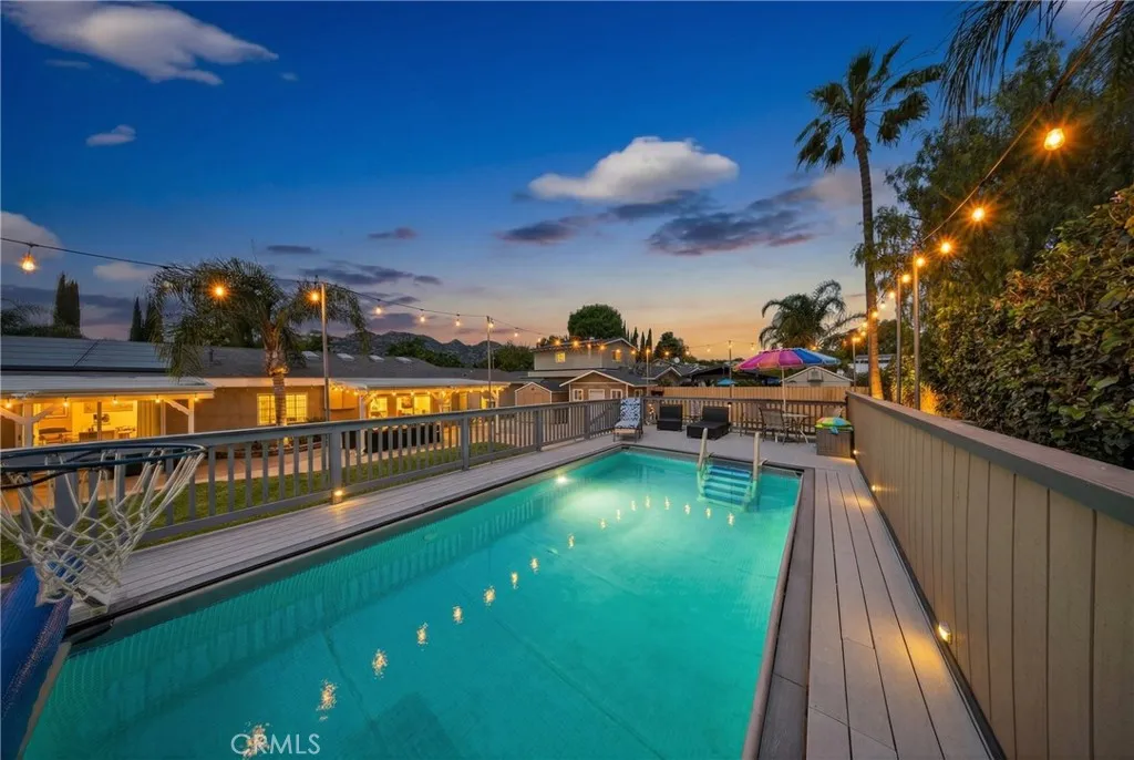 Welcome to a home that truly has it allstyle, comfort, and the ultimate entertainers lifestyle. Step into a beautifully upgraded kitchen featuring custom cabinetry with soft-close doors and drawers, stunning granite countertops, a large center island and 5 range burner stoveperfect for gathering, cooking, and hosting. The open-concept layout flows seamlessly into the dining and living areas, highlighted by warm finishes, abundant natural light, and a charming fireplace that creates an inviting atmosphere. Unwind in the expansive primary suite with a private en-suite bath highlighted by a jacuzzi tub, perfect for relaxing after a long day. Outdoors is where this home really shines. Enjoy your own private resort-style backyard complete with an elevated pool, spacious decking, and multiple areas to relax or entertain. Two covered patiosone equipped with a TVplus a gazebo create the perfect setup for hosting friends, watching the game, or unwinding year-round. This is truly an entertainers backyard. The front yard features a drought-tolerant desert landscape, offering both beauty and low maintenance. For added convenience and functionality, the property includes RV parking with a 30-amp electrical hookup, as well as solar on the roof for energy efficiency and long-term savings. This home blends thoughtful upgrades with everyday comfortideal for anyone looking to live, entertain, and enjoy the California lifestyle to the fullest