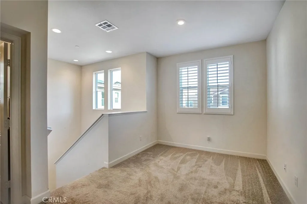 Welcome to this beautifully maintained, turnkey home located in Ontario Ranch. Built in 2022, this modern residence offers approximately 1,947 square feet of thoughtfully designed living space, featuring 3 spacious bedrooms and 2.5 bathrooms. Enjoy the benefits of newer construction, including energy efficiency, smart home technology, and low-maintenance living. Designed with both comfort and functionality in mind, the open-concept main floor seamlessly connects the living, dining, and kitchen areasideal for everyday living and effortless entertaining. Natural light fills the space, enhanced by newly installed shutters throughout the home. The kitchen serves as the centerpiece, showcasing upgraded finishes including quartz countertops, a large center island with pendant lighting, subway tile backsplash, ample cabinetry, large pantry and generous storage. Recessed lighting with dimmers throughout the home adds both ambiance and flexibility. Sliding glass doors off the dining area lead to a private outdoor space complete with stamped concrete hardscapeperfect for relaxing or hosting guests. Upstairs, a versatile loft provides additional living space ideal for a home office, playroom, or media area. The primary suite offers a comfortable retreat with a private bath and walk-in closet, while two additional bedrooms provide flexibility for guests or growing needs. A convenient upstairs laundry room adds to the homes thoughtful layout. This home is equipped with a range of modern upgrades, including a paid SunPower solar system (3.50 kW), Tesla EV charger in the garage, tankless