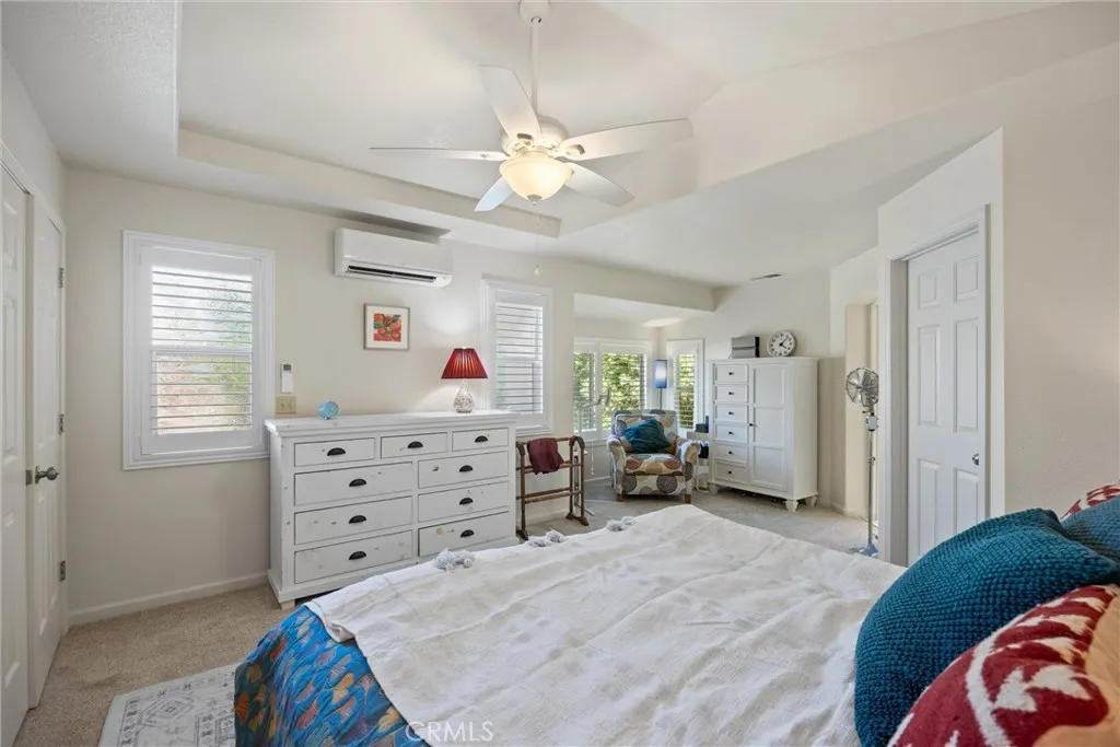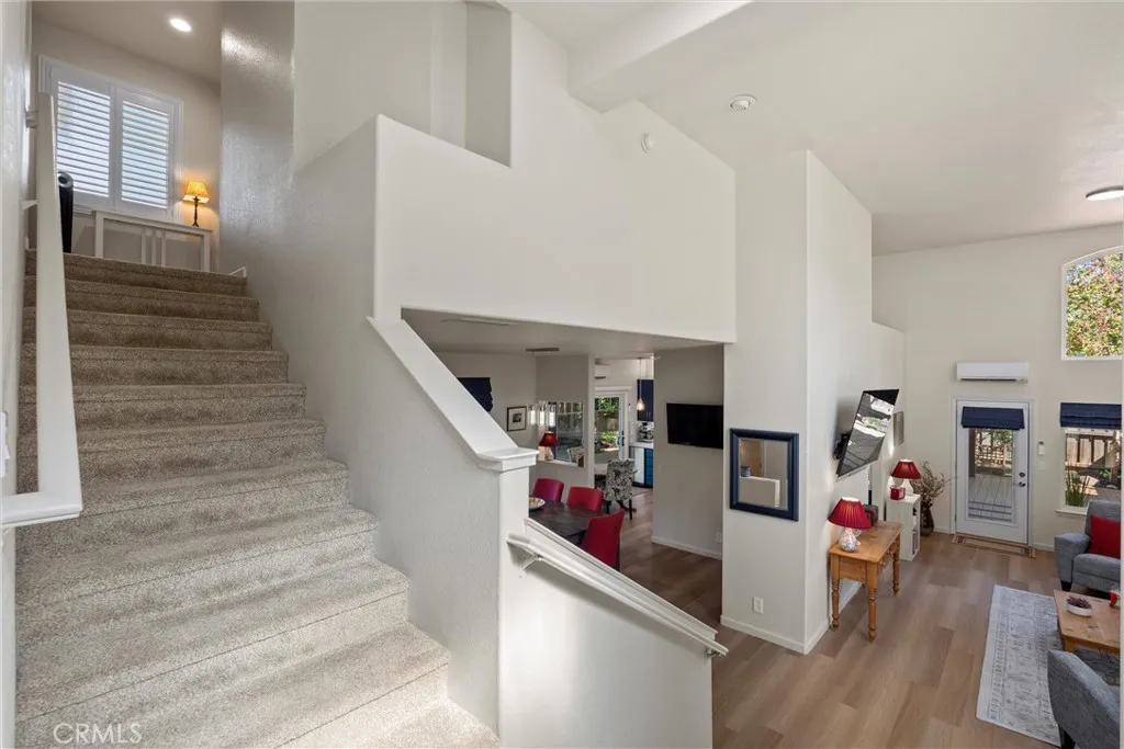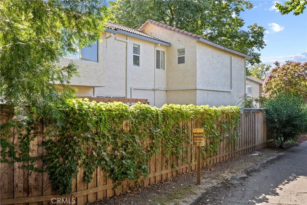 You will love this beautiful, updated home in Mission Ranch, a highly sought-after Santa Barbara-style community featuring a thoughtfully designed circular street seamlessly connecting the neighborhood. Sitting on a corner lot along the Lindo Channel's walking path, this property only has one shared neighbor/fence. The iron-gated front courtyard creates a secluded feel as you approach the home. It provides an additional charming spot to enjoy your morning coffee with its aged terracotta tile, wall fountain, & cafe table. Step inside & be immediately captivated by the home's most remarkable feature: extensive windows that frame the breathtaking beauty of the surrounding trees & gardens. Here you will find a split-level floor plan with the main living areas downstairs & 3 bedrooms upstairs. The large living room boasts two-story ceilings & windows beautifully shaded by magnificent oak trees. A separate dining room sits off the kitchen, where you also have a dining nook. The kitchen has been upgraded with soft-closing cabinet doors & drawers, quartz countertops, a modern backsplash, & reverse osmosis drinking water. The Samsung range & refrigerator are state-of-the-art Smart Appliances. You'll appreciate having remote control from your phone & their flexible functionality. The downstairs level also offers you a guest bath & laundry room. Upstairs, the primary suite is very spacious. It has room for a desk or sofa & lots of windows with treetop views. The primary bedroom's en-suite bath has been remodeled. It now features a spacious walk-in shower with a bench, a traditional wa