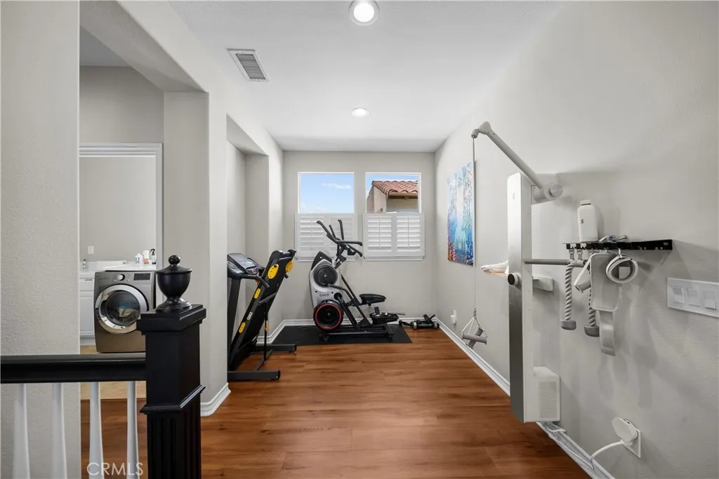 Welcome to luxury living behind the gates of the prestigious Bridgeport Island community! This beautifully situated 4-bedroom, 3 bath home offers a rare opportunity to enjoy serene waterfront surroundings, with a charming stream flowing just behind the propertycreating a peaceful, private backdrop that feels like a daily retreat. This bright and airy home is filled with natural light, enhancing the spacious and functional floor plan designed for both everyday living and entertaining. A highly desirable first-floor room offers the flexibility to be converted into a guest suite, home office, or private retreatperfect for multi-generational living or visiting guests. Upstairs, youll find well-appointed bedrooms providing comfort and privacy for the whole household. The home also features a three-car garage, offering ample space for parking, storage, or even a home gym setup. And it also features a newer 40k paid solar system, saving hundreds a month. Step outside to enjoy the tranquil setting, where the soothing sounds of the stream and nearby walking paths invite you to unwind. Residents of Bridgeport Island enjoy exclusive access to resort-style amenities, including a private lake with scenic pathways, pools, parks, and beautifully maintained grounds that create a true community lifestyle. Whether you're taking an evening stroll around the lake, enjoying peaceful water views, or entertaining in your own backyard, this home offers the perfect blend of elegance, comfort, and location. Dont miss this rare opportunity to live in one of Valencias most sought-after gated communiti