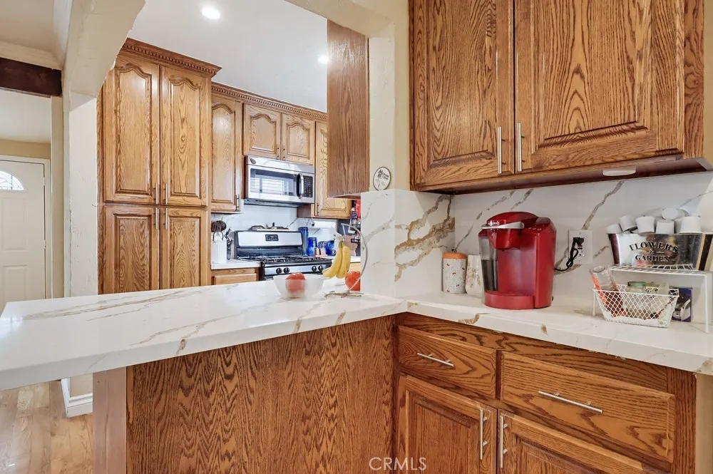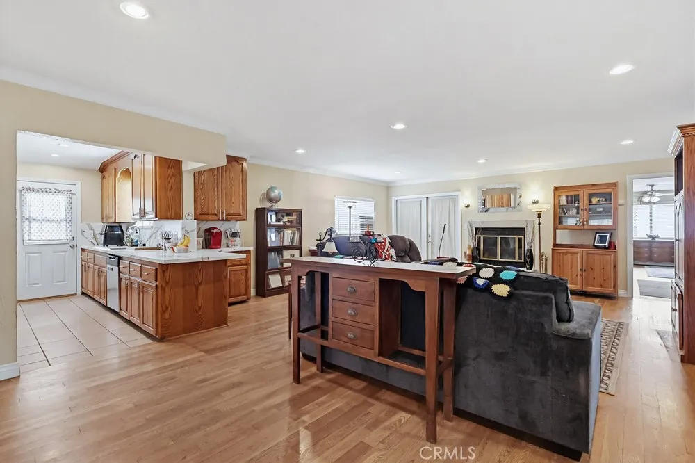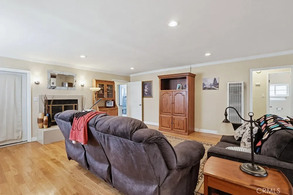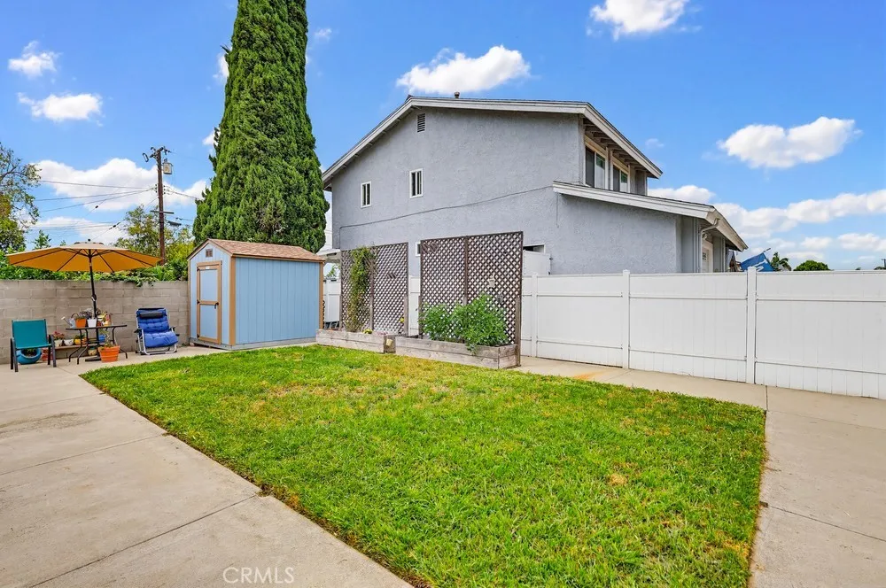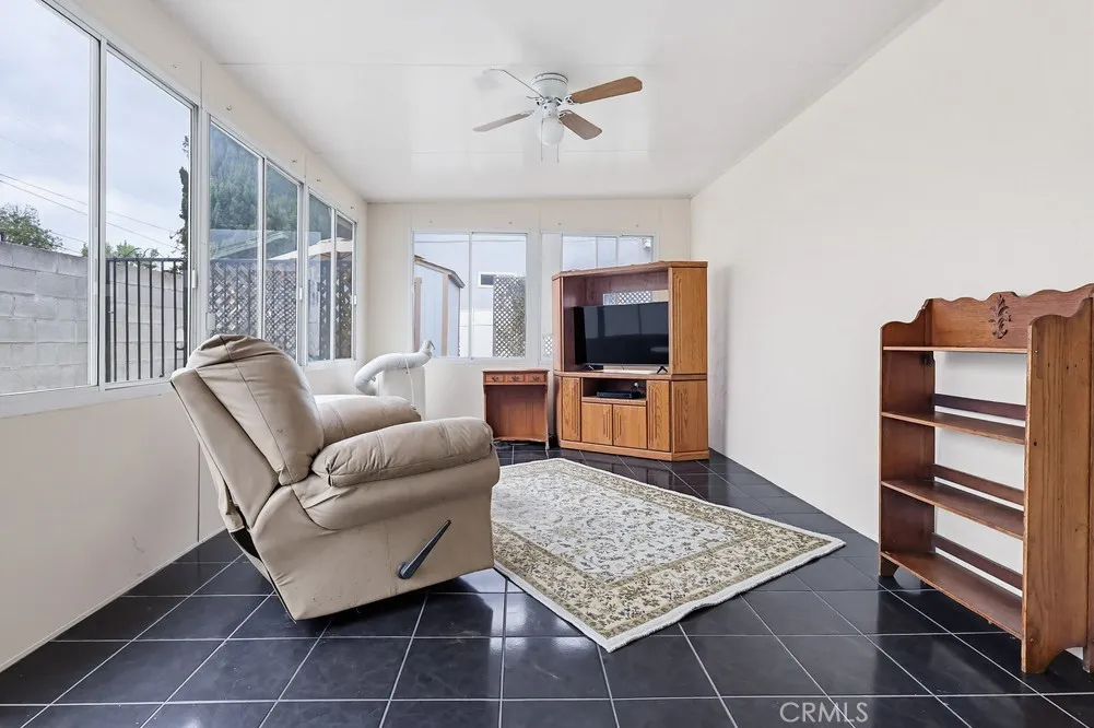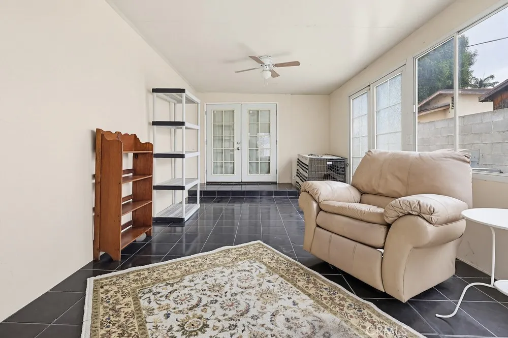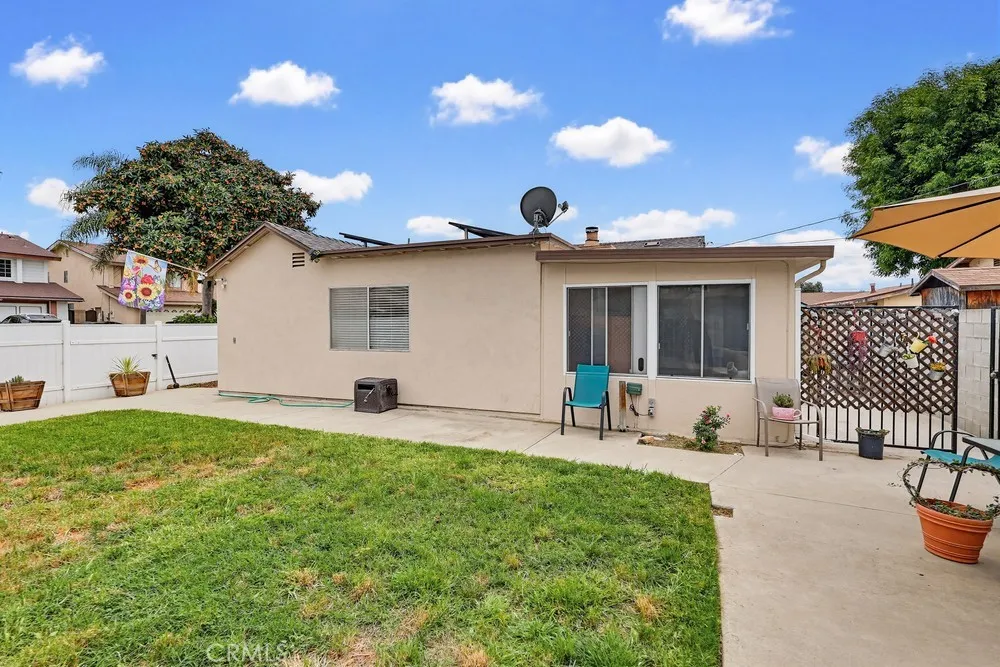 Welcome to this spacious three-bedroom, two-bathroom corner-lot home, where modern efficiency meets classic comfort. This residence boasts fully paid-off solar panels, offering the new owner immediate energy savings, along with the peace of mind provided by a newer roof and updated electrical system. The interior features an open floor plan that seamlessly integrates the living area, dining room, and a galley kitchen finished with hardwood flooring. Double doors lead from the main living space to a large enclosed patio, offering space for a home office, gym, or playroom. The expansive primary suite includes a private sitting area, a walk-in closet, and a full en-suite bathroom. Two additional well-proportioned bedrooms and a second full bathroom complete the interior layout. The exterior is designed for relaxation and utility, featuring a generous side patio and a large backyard ideal for outdoor living. Situated in a quiet neighborhood, the property provides ample parking via the private driveway, garage, and street.