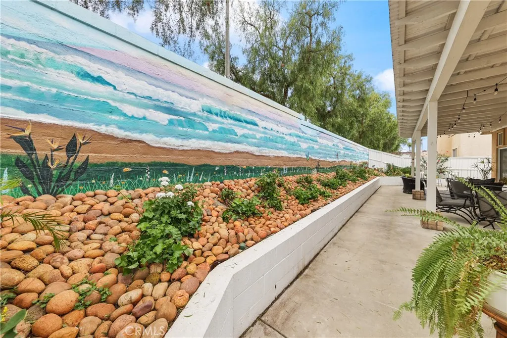 Welcome to this beautifully remodeled, move-in ready single-level home, ideally situated on a safe and private cul-de-sac. This exceptional single-family residence offers a rare blend of comfort, style, and artistic charm, featuring a stunning ocean-inspired mural by a local artist that creates a unique and serene backdrop throughout the home. Step inside to an abundance of natural light, enhanced by expansive windows, clerestory accents, and high ceilings that create a bright, open, and spacious feel throughout the home. The open-concept living and dining areas are warm and inviting, centered around a cozy fireplace and seamlessly flowing to the backyardperfect for indoor-outdoor living. Designed for both relaxation and entertaining, the backyard is your own private oasis. Unwind in the endless pool while enjoying ocean-inspired views and a beautifully landscaped, harmonious yard that evokes tranquility at any time of day. The home features four generously sized bedrooms, offering ample space and privacy for everyone. The primary suite serves as a comfortable retreat, complete with a walk-in closet and a well-appointed layout designed for everyday living. The remodeled kitchen is both functional and inviting, featuring updated cabinetry, newer appliances, and a spacious secondary dining area. The flexible layout offers exciting potential for customization, including the option to expand the kitchen or incorporate a center island to create a more expansive, modern entertaining space. Large windows in the kitchen frame the custom mural, bringing art and nature together in a