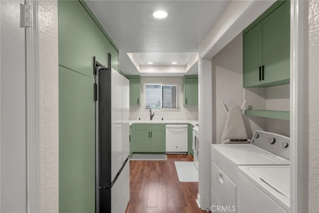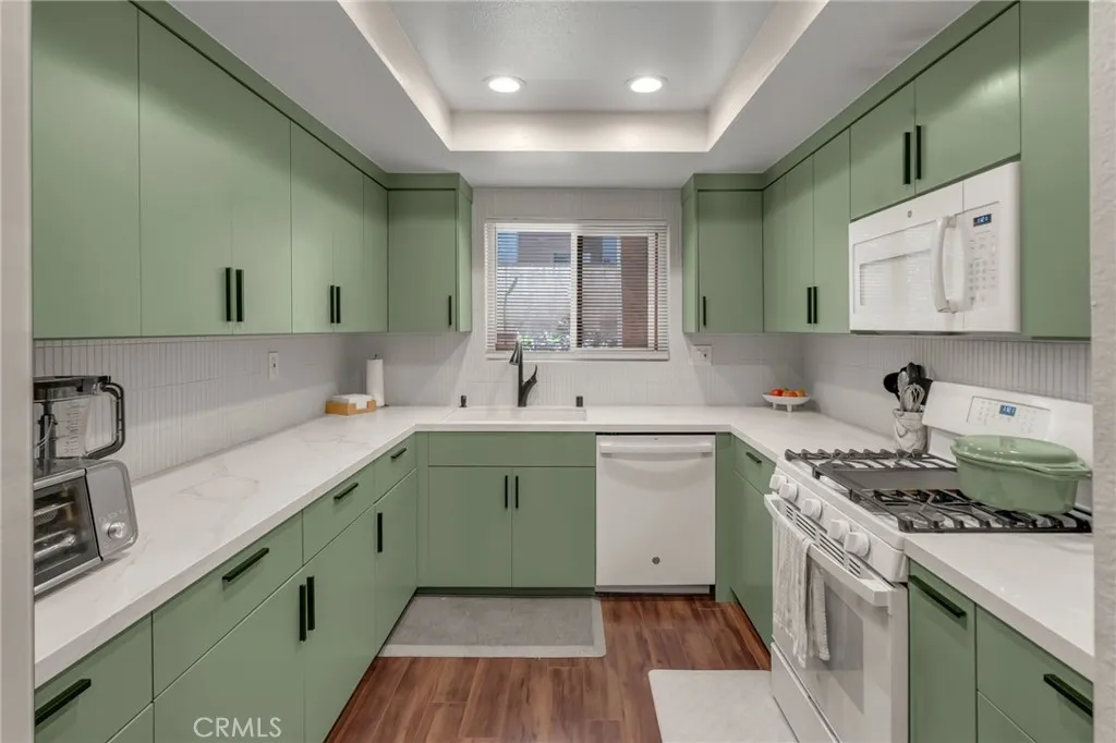 Resort-style living in the highly sought-after community of Signal Hill! This beautifully renovated 2-bedroom, 2-bath end-unit condo is perfectly situated among lush, serene surroundings with views of the sparkling pool. The spacious, open-concept floor plan offers an expansive living and dining greatroom that seamlessly flows to a private balconyperfect for relaxing or entertaining. The oversized Primary Suite is a true retreat, complete with mirrored closet doors, a large walk-in closet, and sliding glass doors that open to the balcony. A generously sized Second Bedroom adds flexible living space. Step into a stunning, modern kitchen featuring custom solid wood cabinetry with pull-out drawers, sleek quartz countertops, designer hardware, and a stylish tile backsplash. Both bathrooms have been thoughtfully upgraded with new vanities, toilets, tiled shower enclosures, updated flooring, hardware, and mirrors. Additional highlights include new dual-pane windows and sliding doors, luxury wood laminate flooring, central A/C, a new front door, in-unit full-size laundry and two assigned parking spaces. Residents enjoy amenities including a clubhouse, pool, spa, bbq area and tennis court. All of this, ideally located, near shopping, dining, parks, golf courses, freeways, and public transportationthis home offers the perfect blend of comfort, style, and convenience.